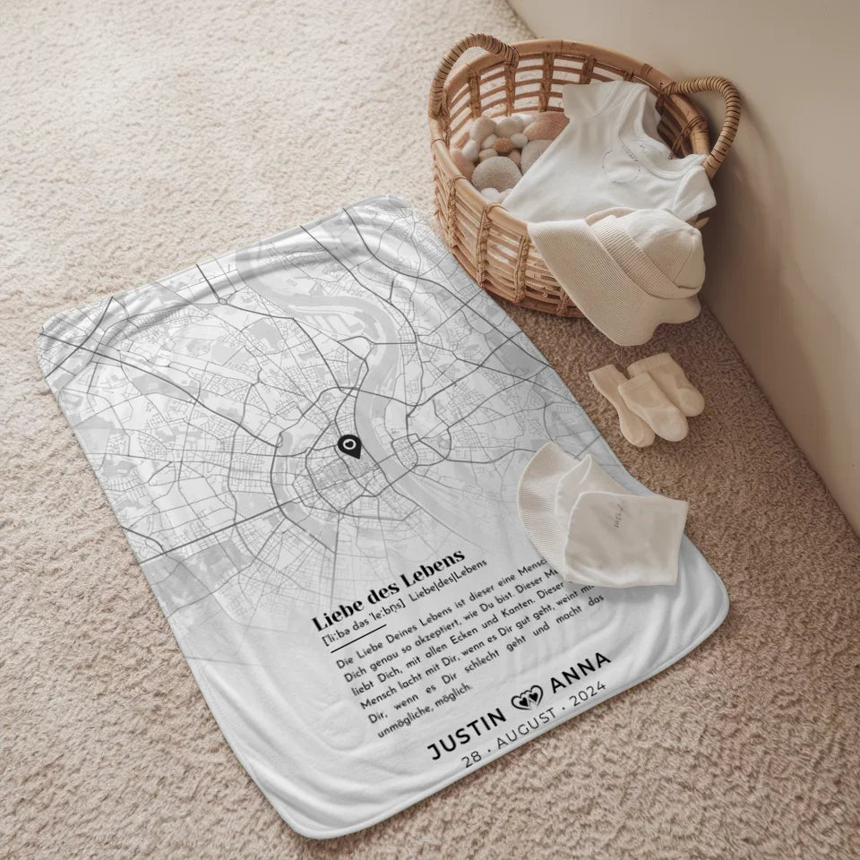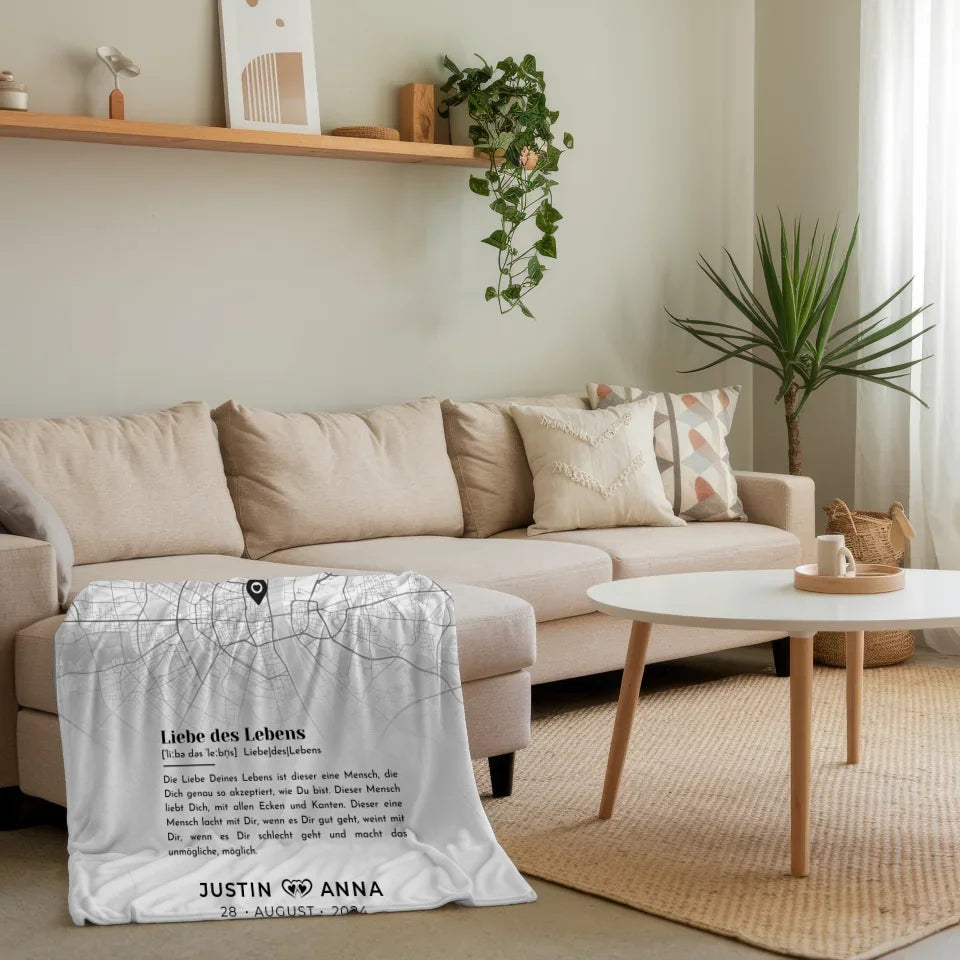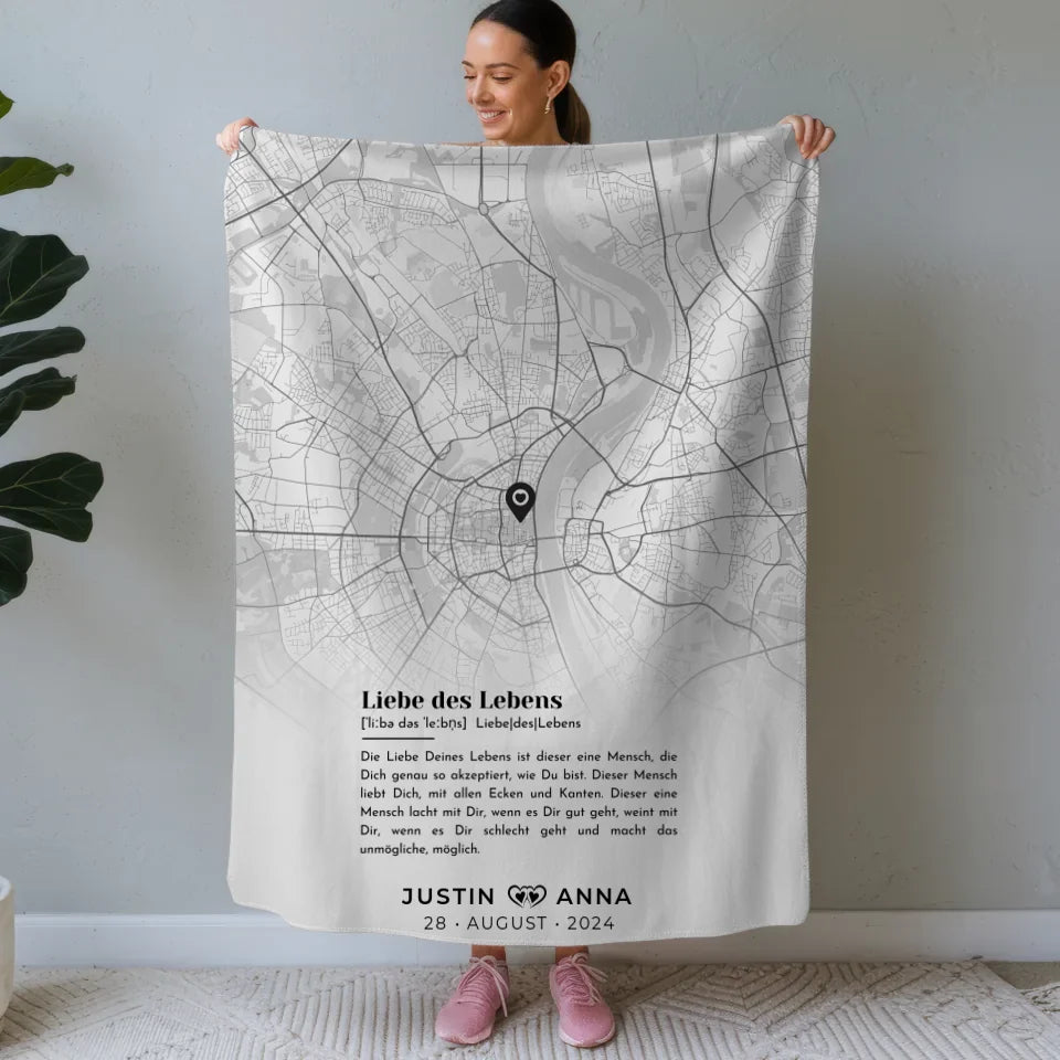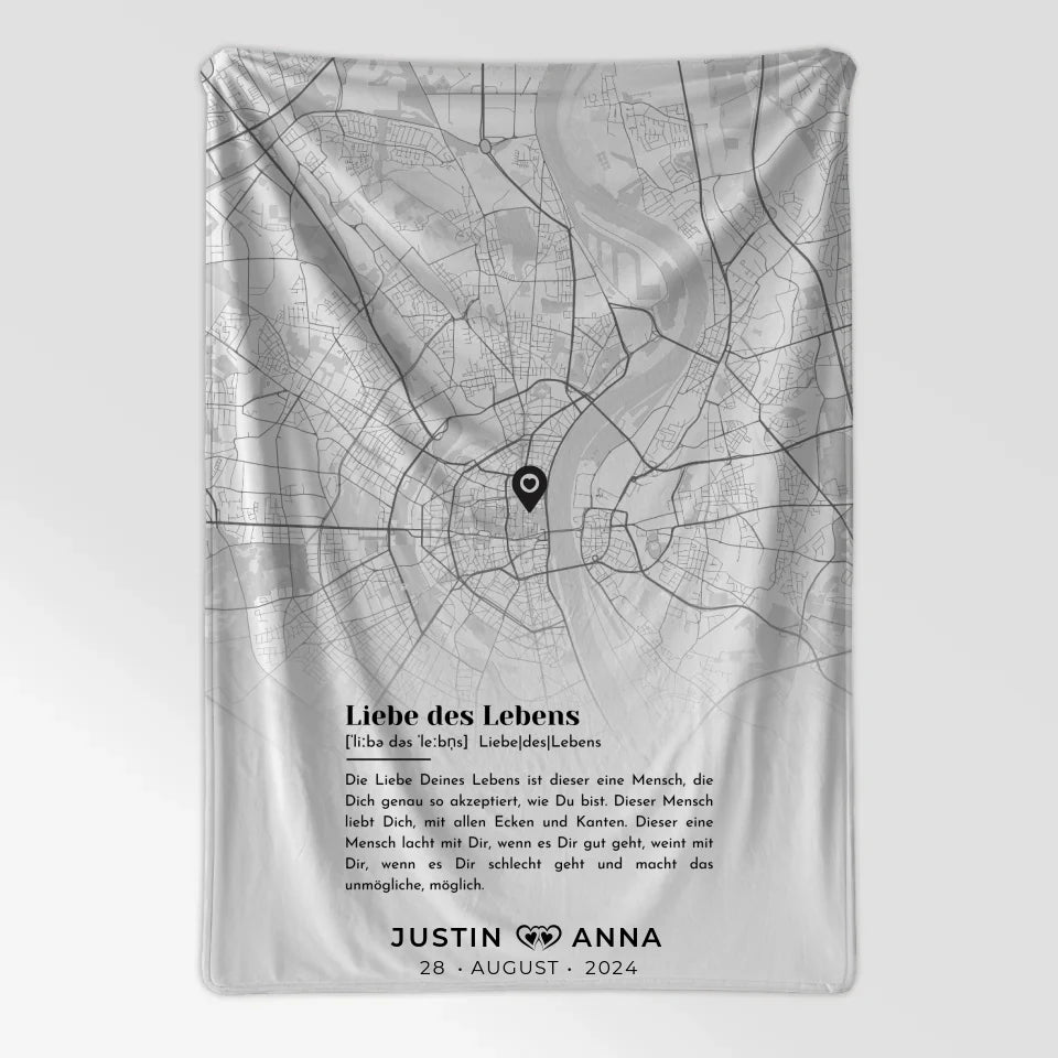 Personalisierte Stadtkarten Decke für Paare - Definition Liebe Des Lebens in Schwarz Weiß