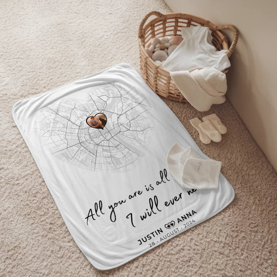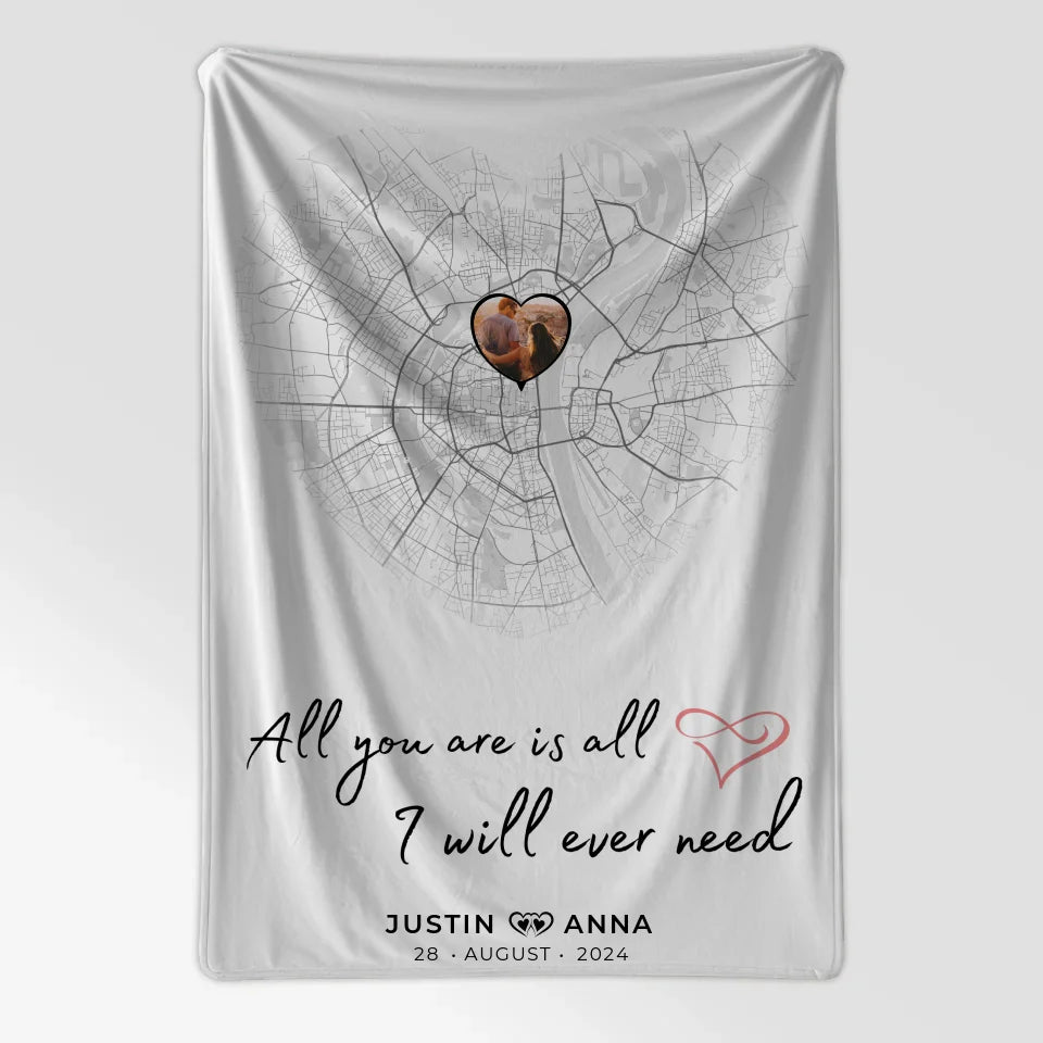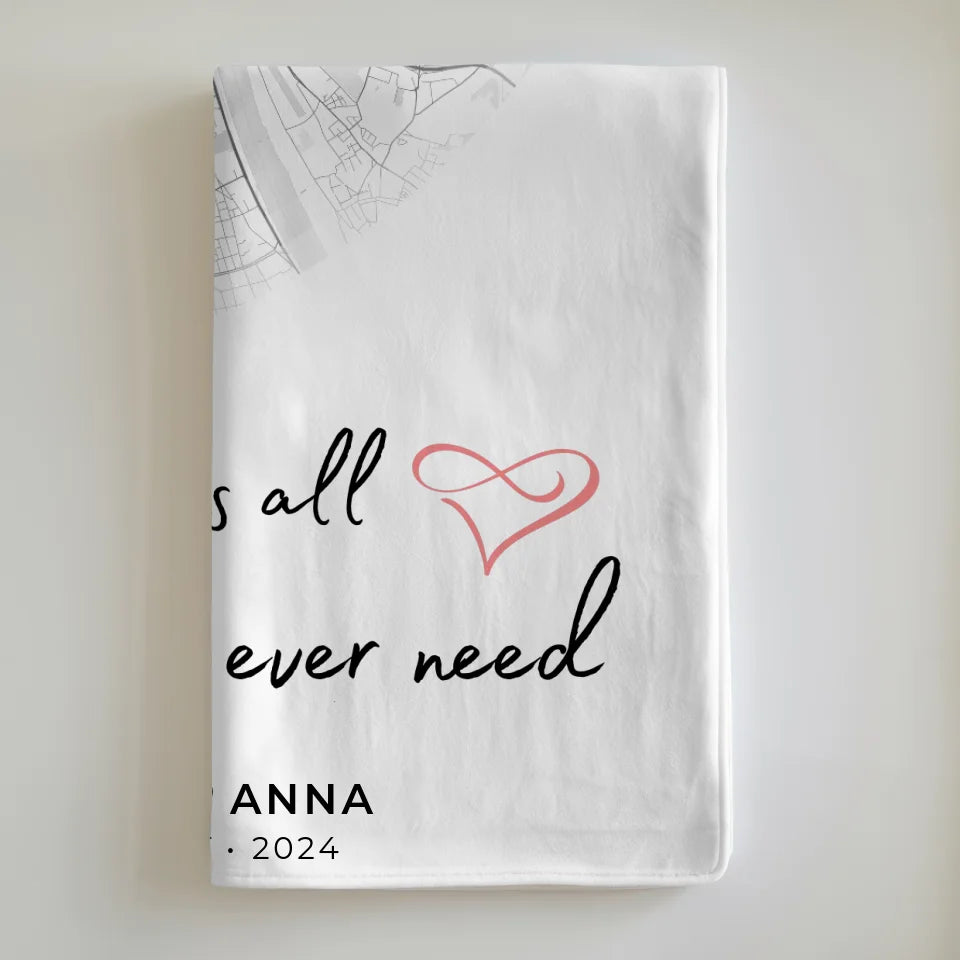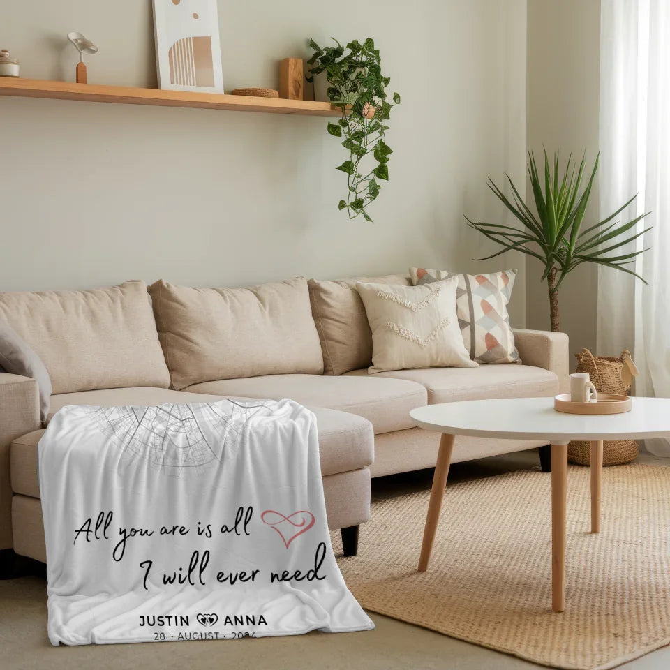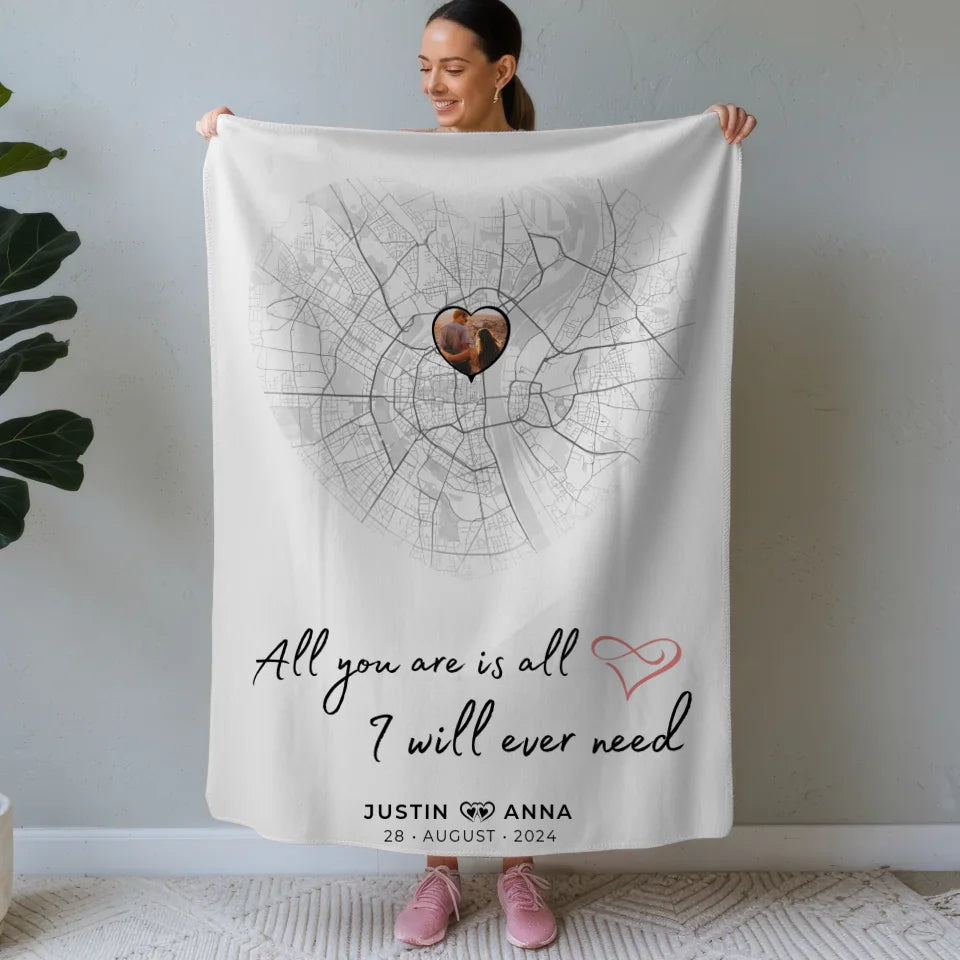 Personalisierte Stadtkarten Decke für Paare Herz All You Are Is All I Will Ever Need
