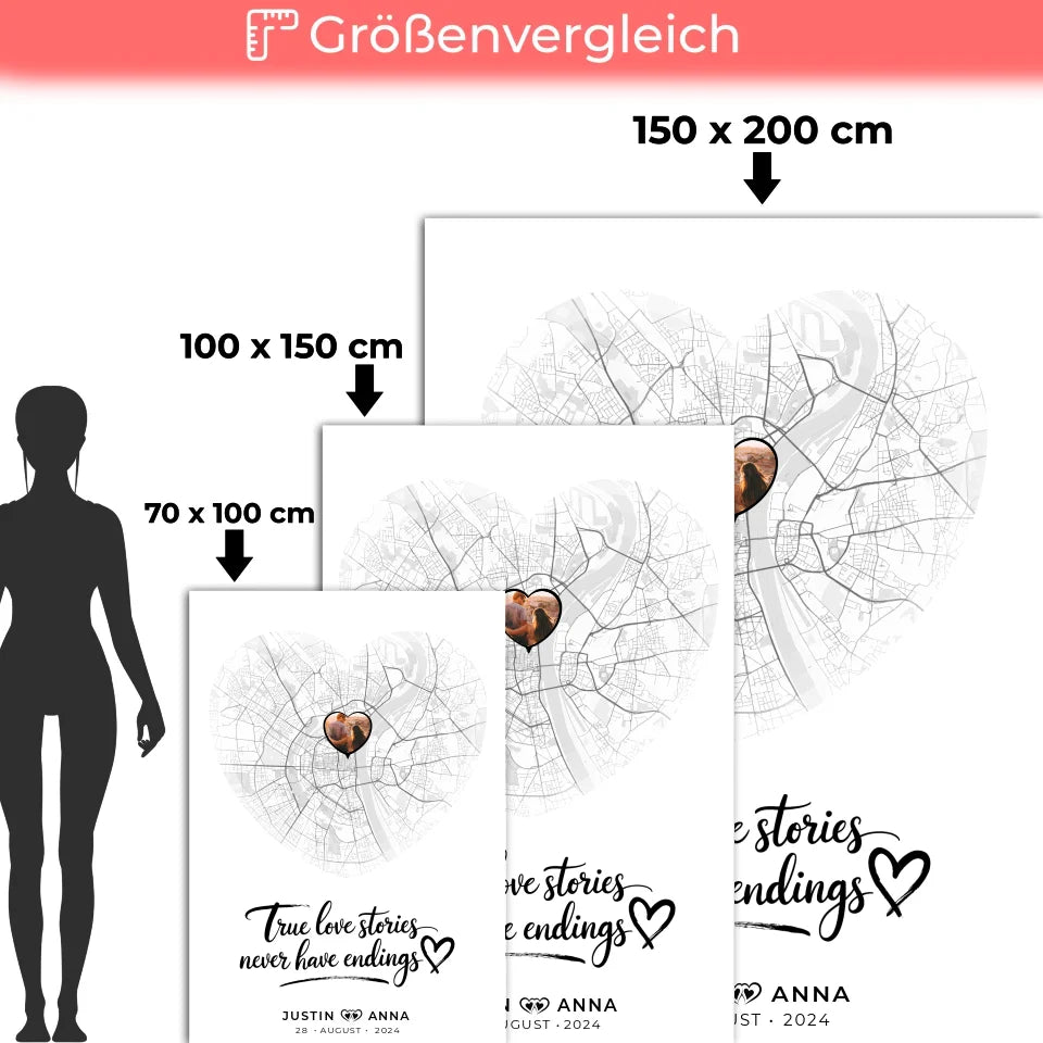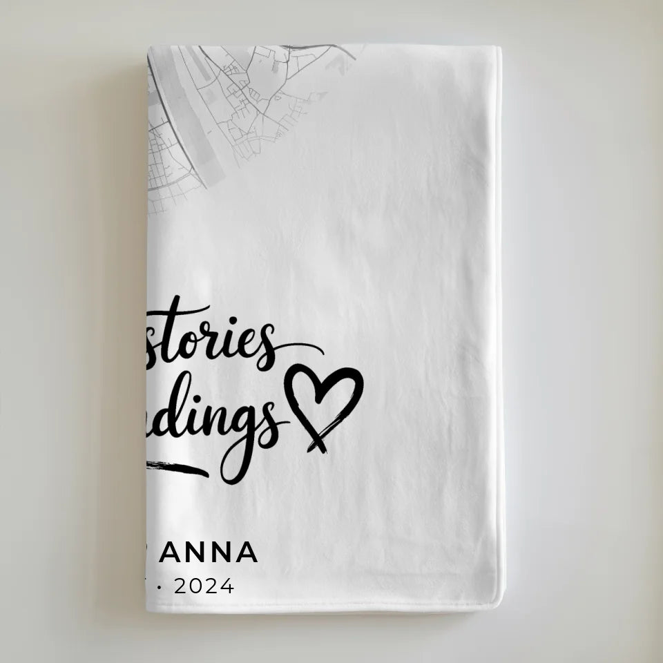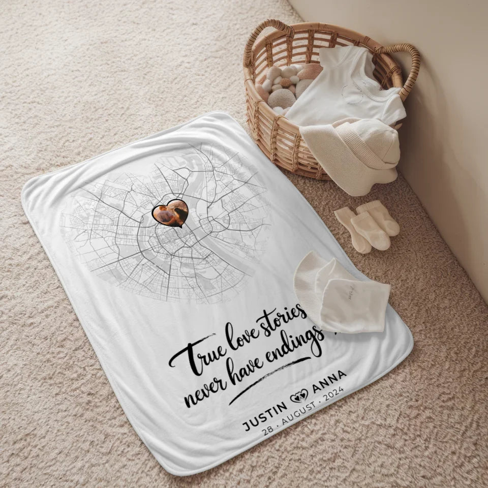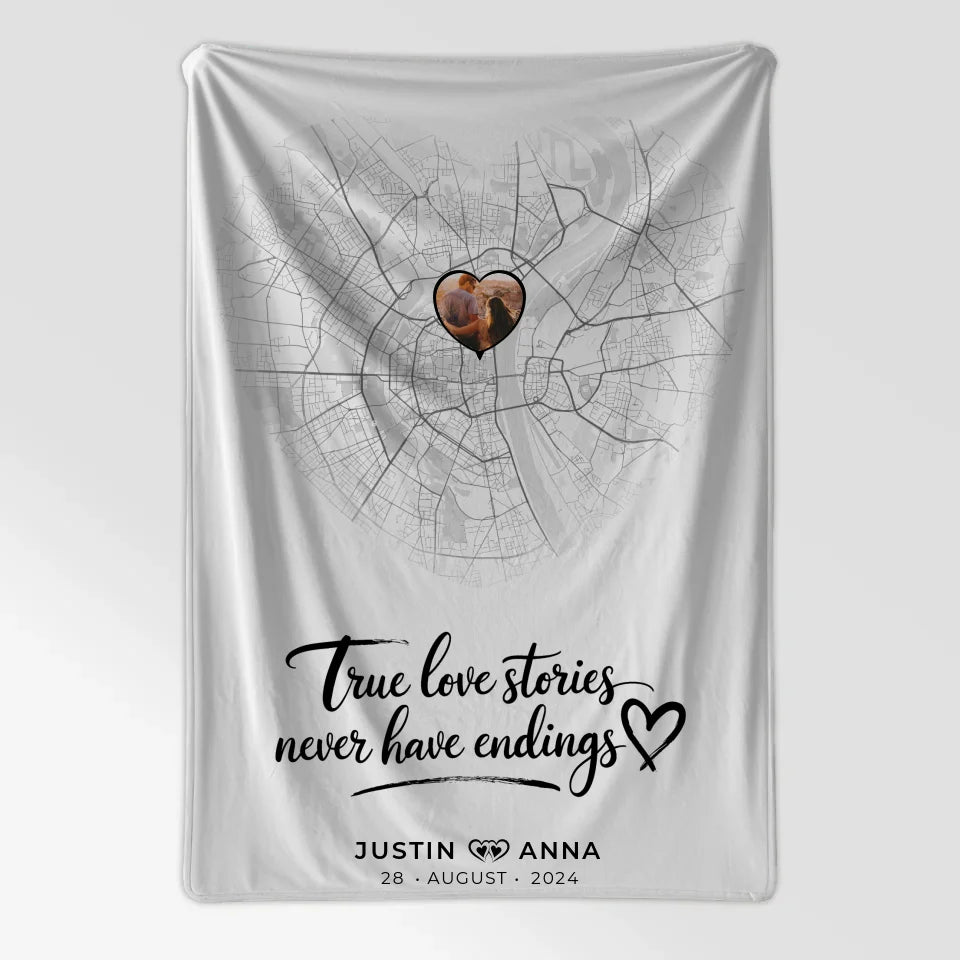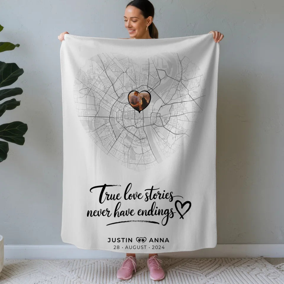 Personalisierte Stadtkarten Decke für Paare - Herz True Love Stories