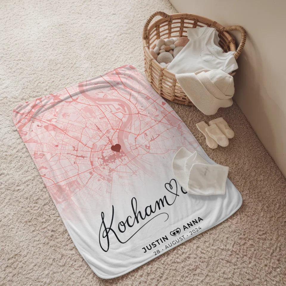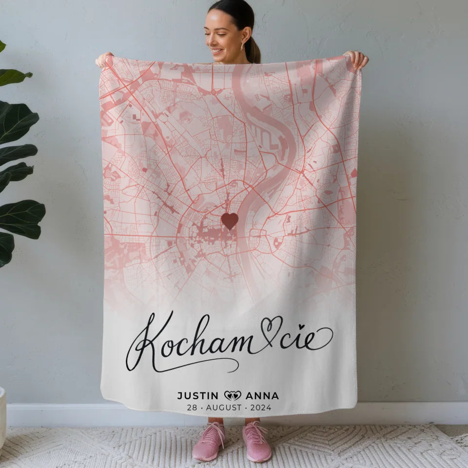 Personalisierte Stadtkarten Decke für Paare - Kocham Cie Roserot