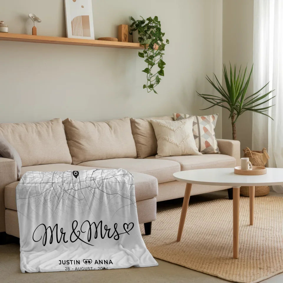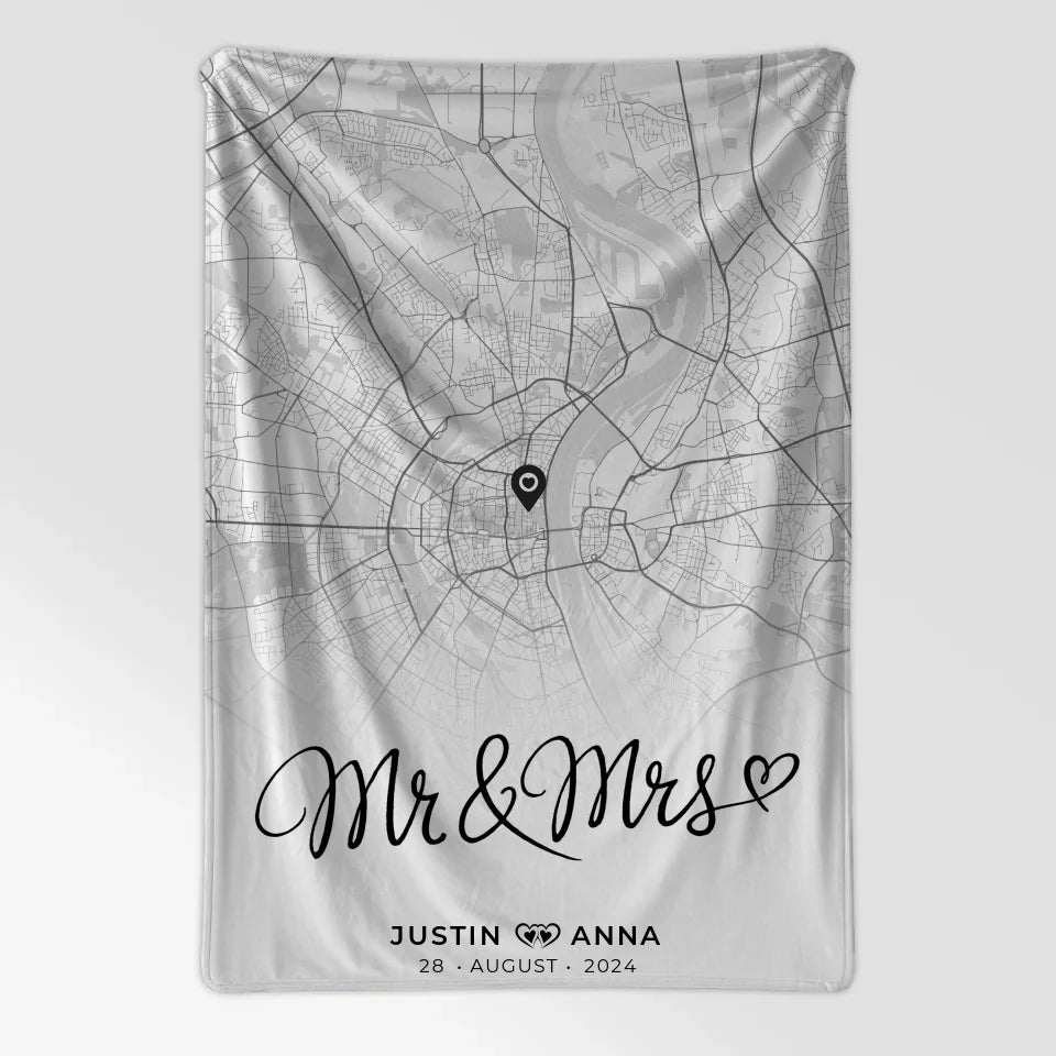 Personalisierte Stadtkarten Decke für Paare Mr & Mrs Schwarz Weiß