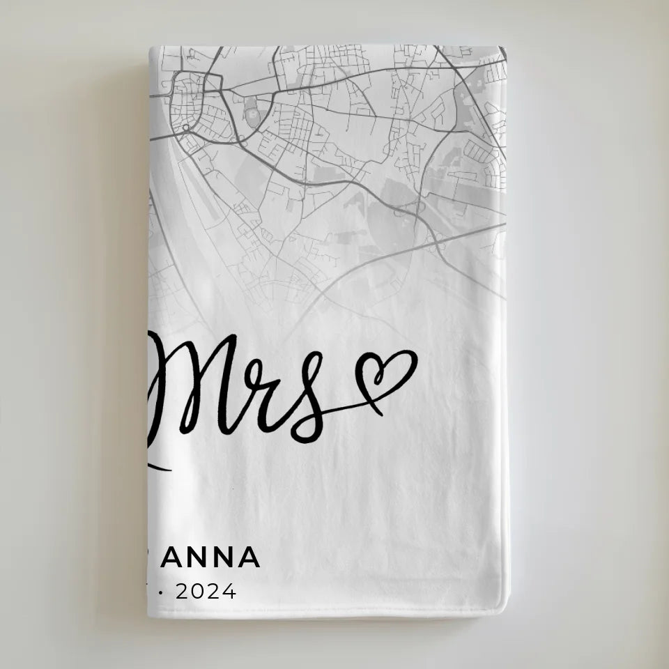 Entdecke die perfekte Kombination aus Stil und persönlicher Note mit unserer personalisierten Stadtkarten Decke für Paare Mr & Mrs Schwarz Weiß. Diese einzigartige Decke ist nicht nur ein gemütliches Accessoire für dein Zuhause, sondern auch ein liebevolles Geschenk, das Erinnerungen lebendig hält. Du kannst die Decke mit einer Karte von einem besonderen Ort, den Namen des Paares und einem eigenen Spruch oder Wunschtext personalisieren. So wird sie zum ganz individuellen Unikat.