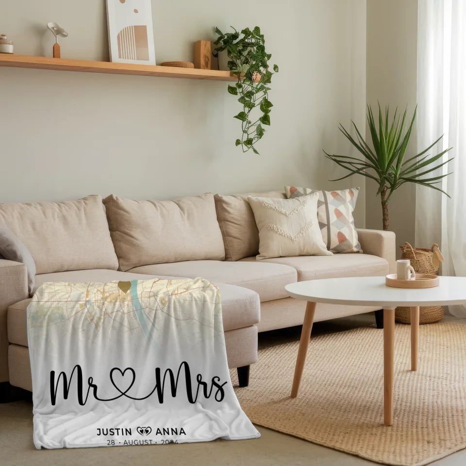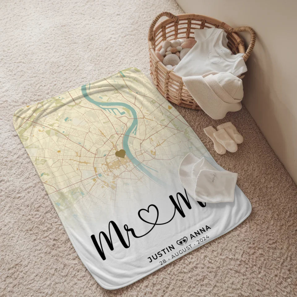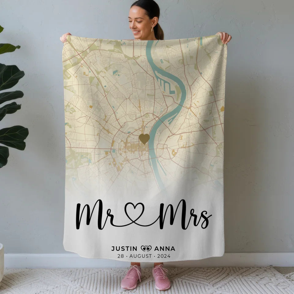 Personalisierte Stadtkarten Decke für Paare Mr & Mrs Vintage