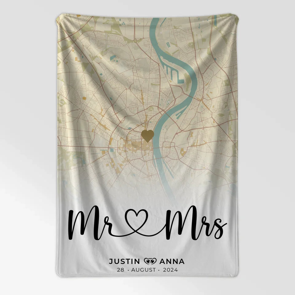 Warte nicht länger und schaffe unvergessliche Erinnerungen mit unserer personalisierten Stadtkarten Decke für Paare Mr & Mrs Vintage. Bestelle jetzt und mache deinen Liebsten eine Freude!