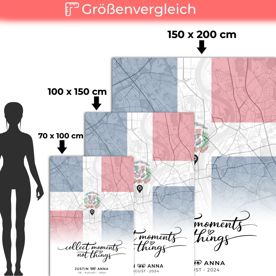 Ideal für Paare, die das Reisen lieben, ist die personalisierte Stadtkarten Decke nicht nur dekorativ, sondern auch ein echter Hingucker. Sie eignet sich perfekt für die gemütlichen Stunden zu Hause, lässt euch von euren Abenteuern in der Dominikanischen Republik träumen und bringt endlose Erinnerungen zurück. Lass deine Liebe erstrahlen und erlebe die Magie von 'Collect Moments' mit unserer einzigartigen Decke! Ob im Wohnzimmer, Schlafzimmer oder als romantisches Highlight - diese Decke bietet nicht nur Wärme, sondern auch eine persönliche Note. Hol dir jetzt deine personalisierte Stadtkarten Decke und feiere eure gemeinsame Geschichte! Ideal auch mit einem Foto Map Marker, um den schönsten Ort eures Urlaubs zu markieren.