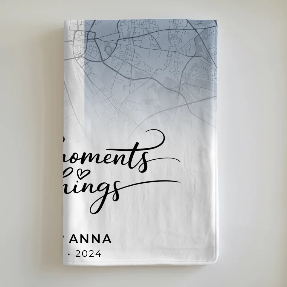 Du hast die Möglichkeit, die Decke nach deinen Wünschen zu gestalten. Personalisiere sie mit 1 Foto, einer Karte mit einem Ort, der für euch bedeutend ist, sowie euren Namen und einem eigenen Spruch oder Wunschtext. Diese personalisierte Note macht die Decke zu einem außergewöhnlichen Geschenk für besondere Anlässe, sei es zum Valentinstag, zum Geburtstag oder auch zu Weihnachten. Mit dieser Stadtkarten Decke holst du dir ein Stück eurer gemeinsamen Erinnerungen in die eigenen vier Wände.