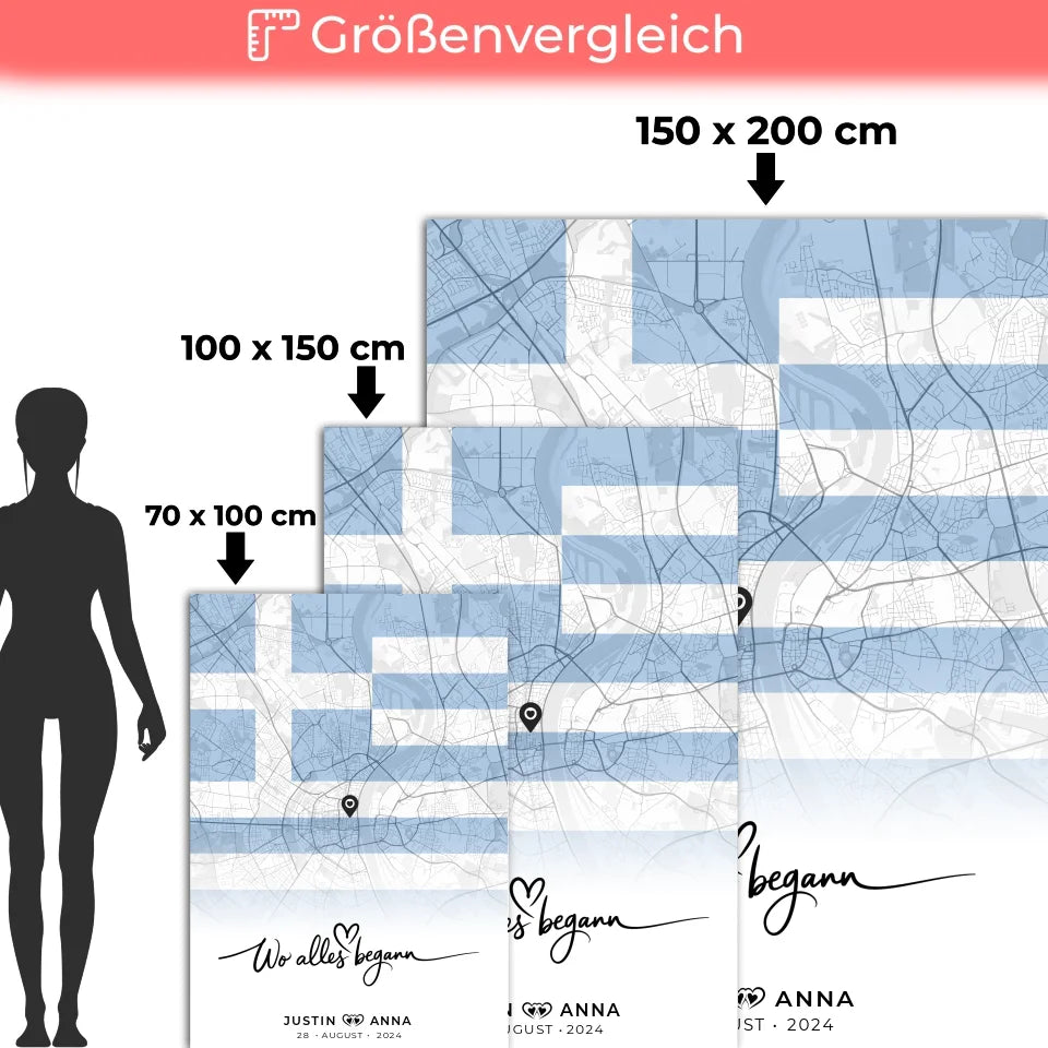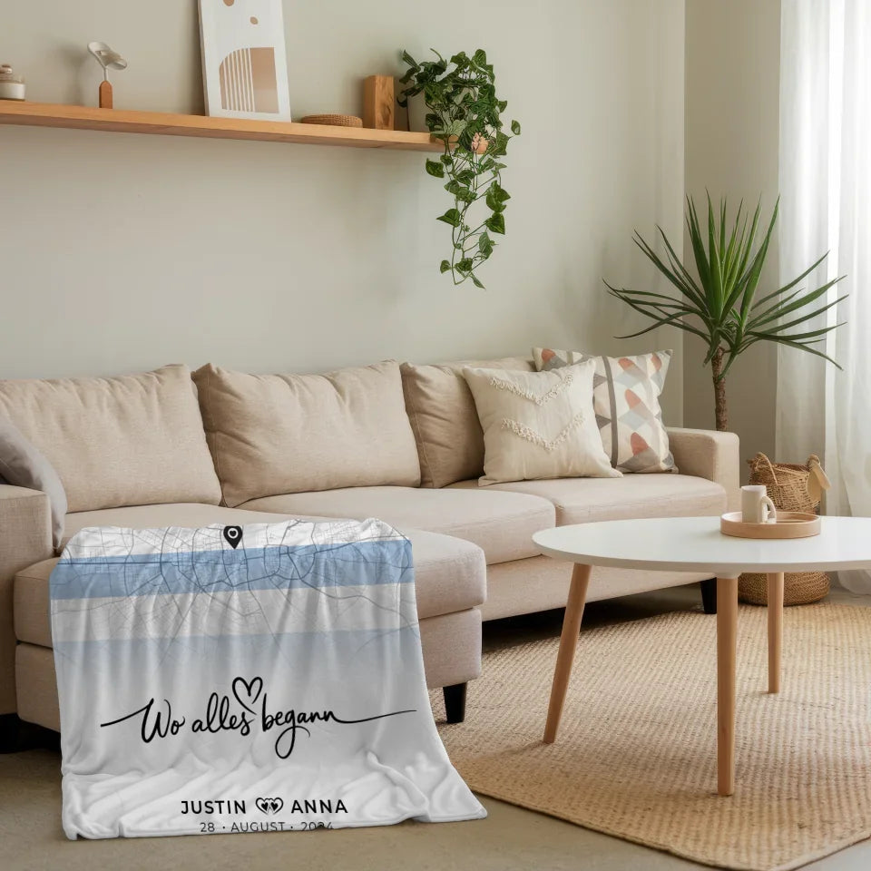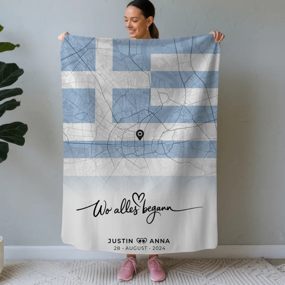 Entdecke die einzigartige Personalisierte Stadtkarten Decke für Paare Urlaub Griechenland, die nicht nur wärmt, sondern auch Erinnerungen in jedem Faden trägt. Diese hochwertige Decke verbindet stilvolles Design mit persönlicher Note. Der wunderschöne Spruch 'Wo Alles Begann' macht sie zum perfekten Geschenk für eure gemeinsamen Abenteuer. Egal ob für den Valentinstag, zum Geburtstag oder zu Weihnachten – diese Decke ist ein emotionales Highlight für jeden Anlass.