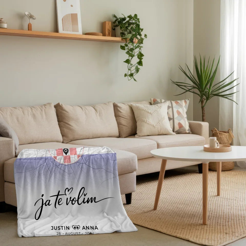 Personalisierte Stadtkarten Decke für Paare Urlaub Ja Te Volim Kroatien
