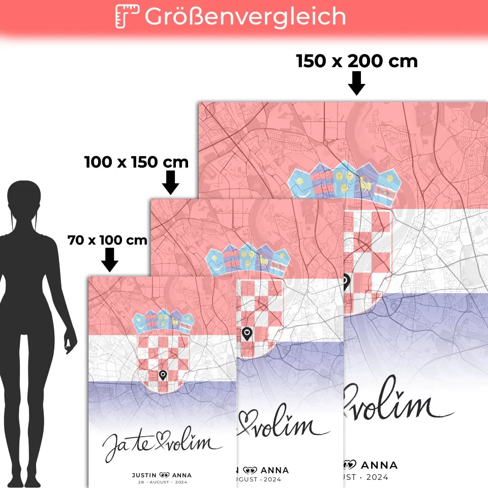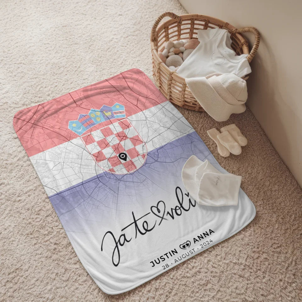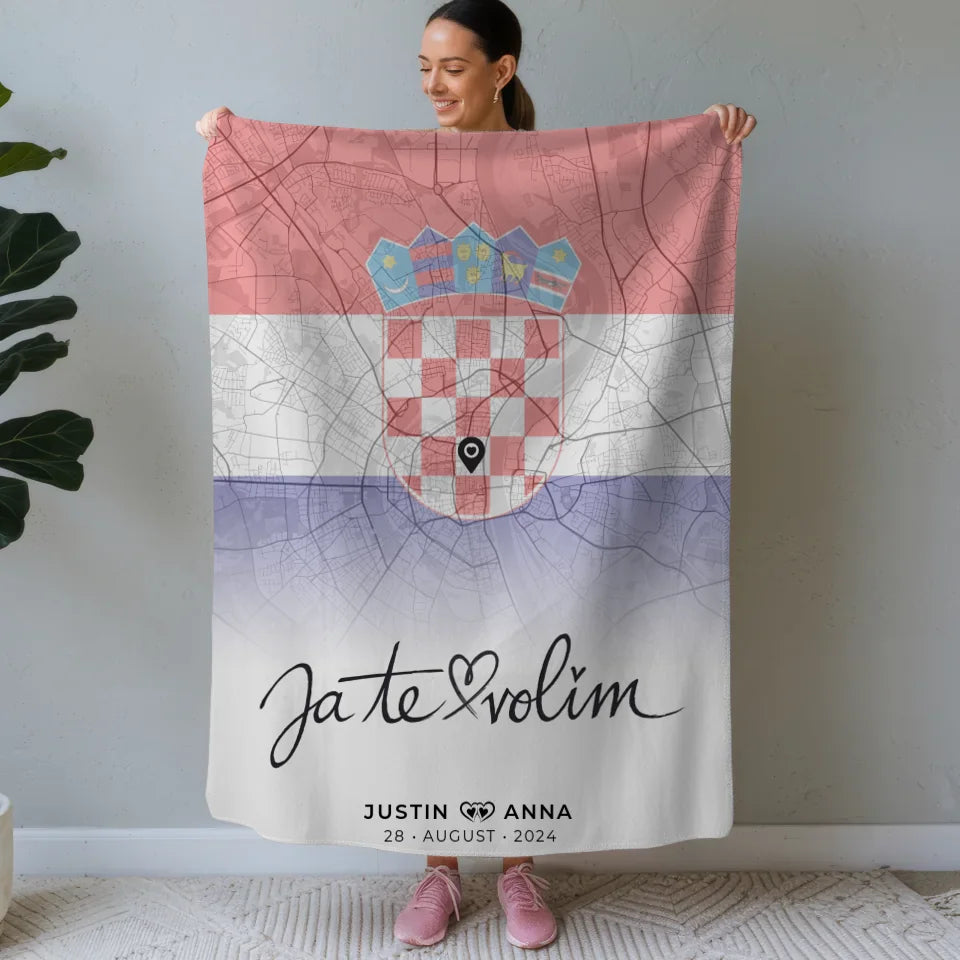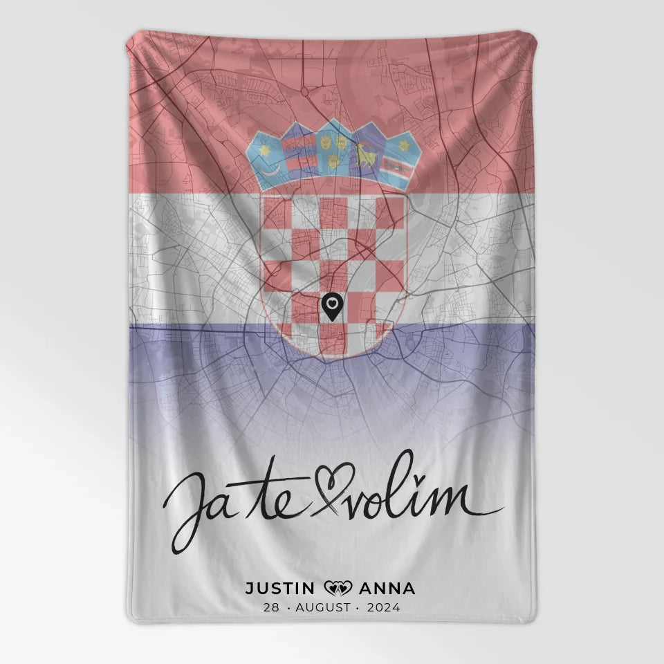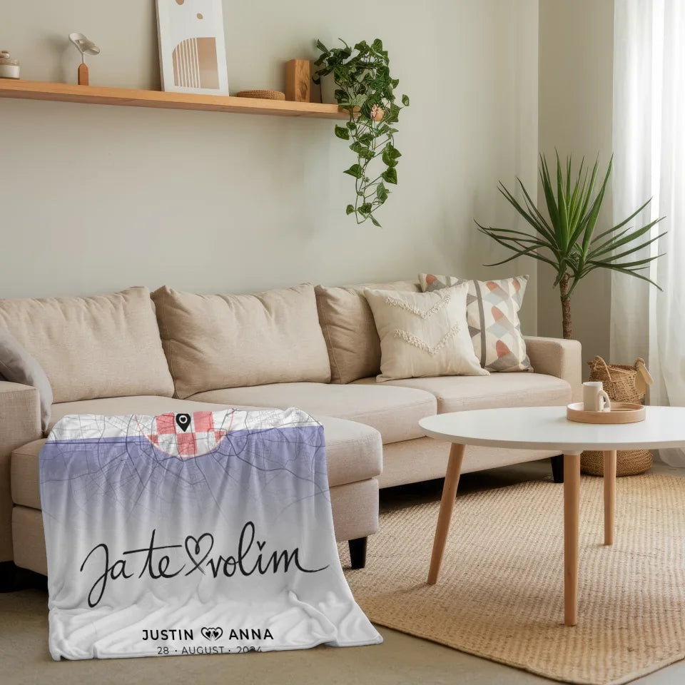 Personalisierte Stadtkarten Decke für Paare Urlaub Kroatien Ja Te Volim