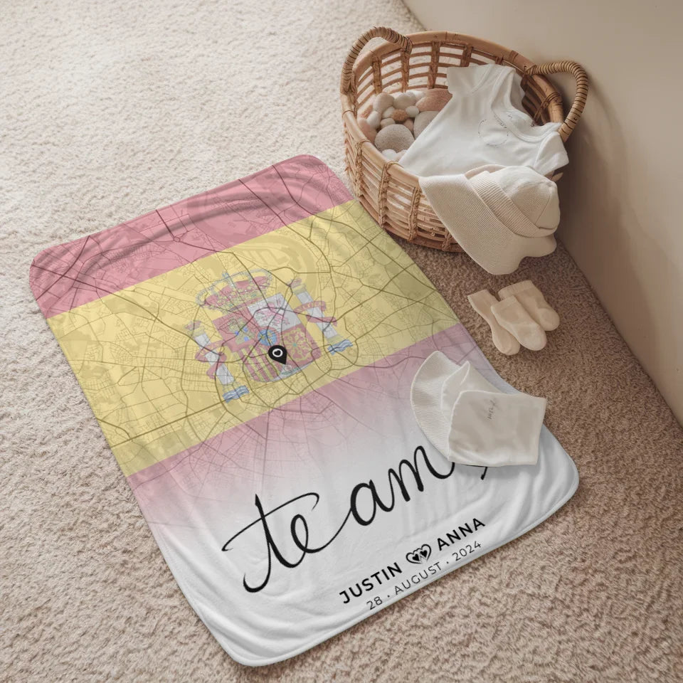 Personalisierte Stadtkarten Decke für Paare Urlaub Spanien Te Amo