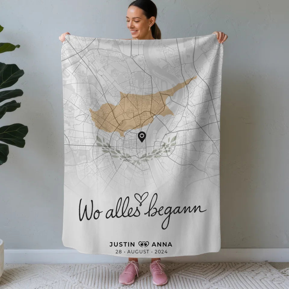 Personalisierte Stadtkarten Decke für Paare Urlaub Zypern Wo Alles Begann