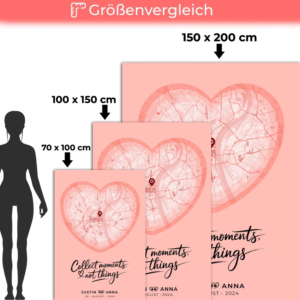 Personalisierte Stadtkarten Decke Paare Herz Altrosa Collect Moments