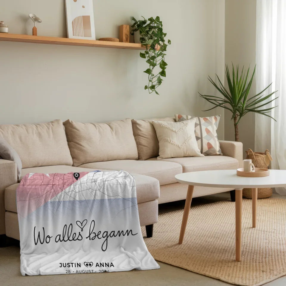 Entdecke die personalisierte Stadtkarten Decke für Paare