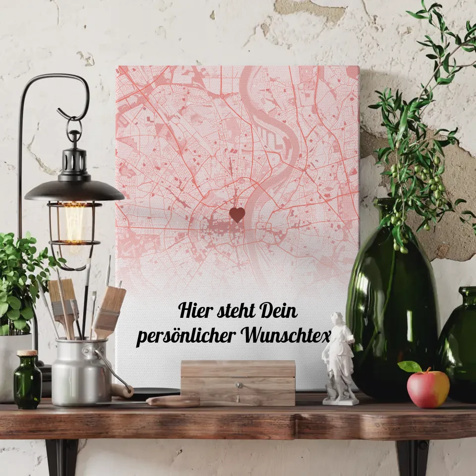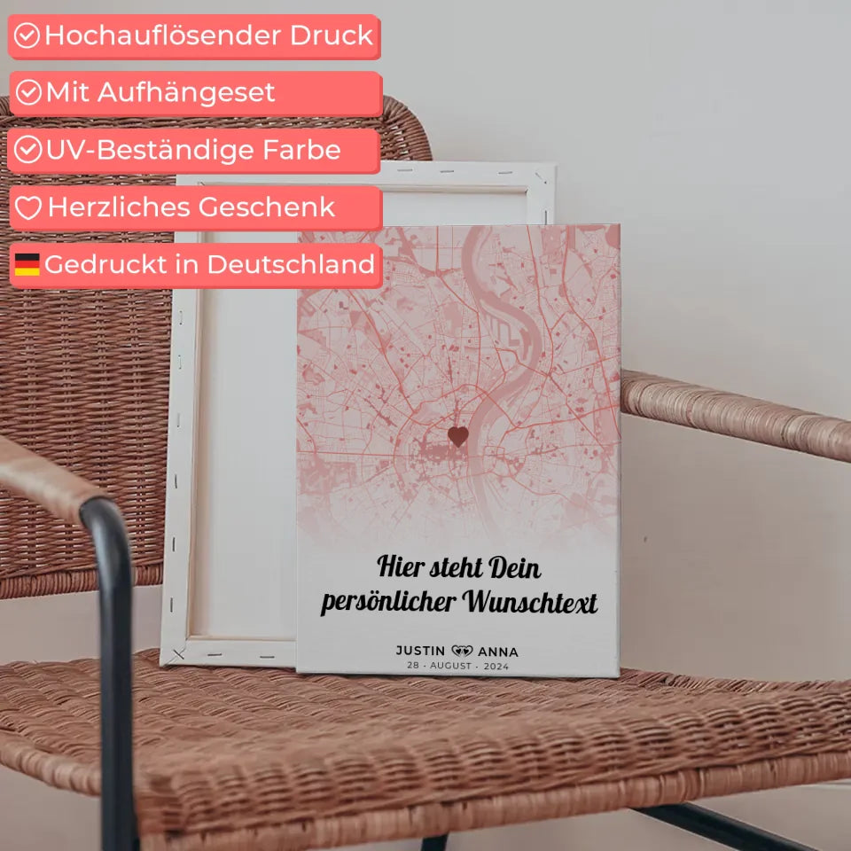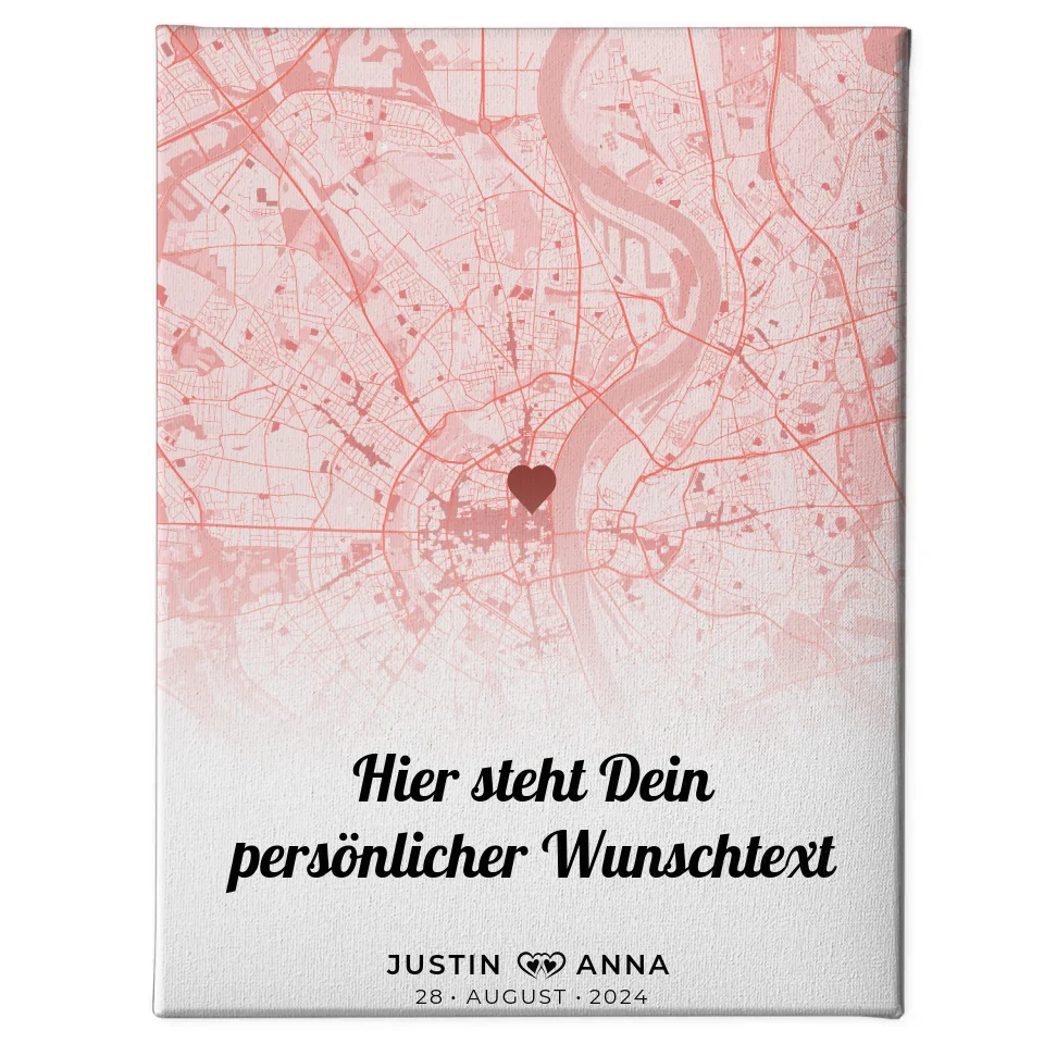 Personalisierte Stadtkarten Leinwand für Paare mit Wunschtext in Roserot