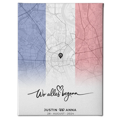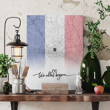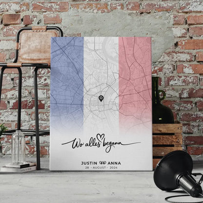 Personalisierte Stadtkartenleinwand Paare Urlaub Frankreich