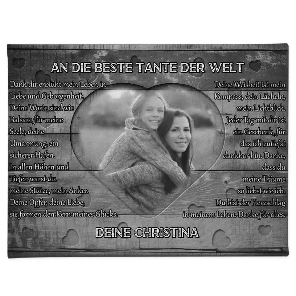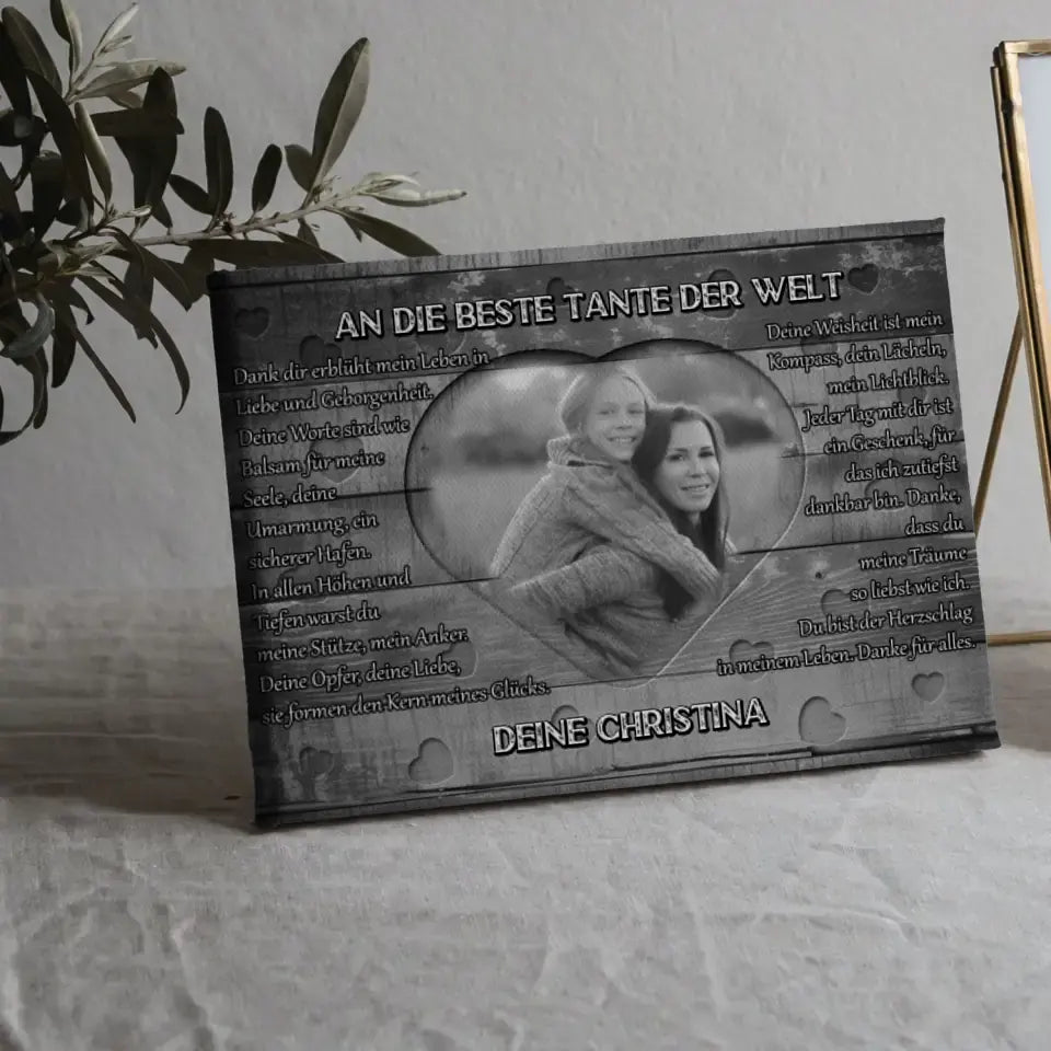 Du bist auf der Suche nach einem schönen tollen Geschenk? Dann ist Unsere Personalisierte Tante Leinwand DANKE Schwarz Weiß ein einzigartiges personalisiertes Geschenk.