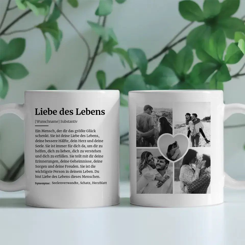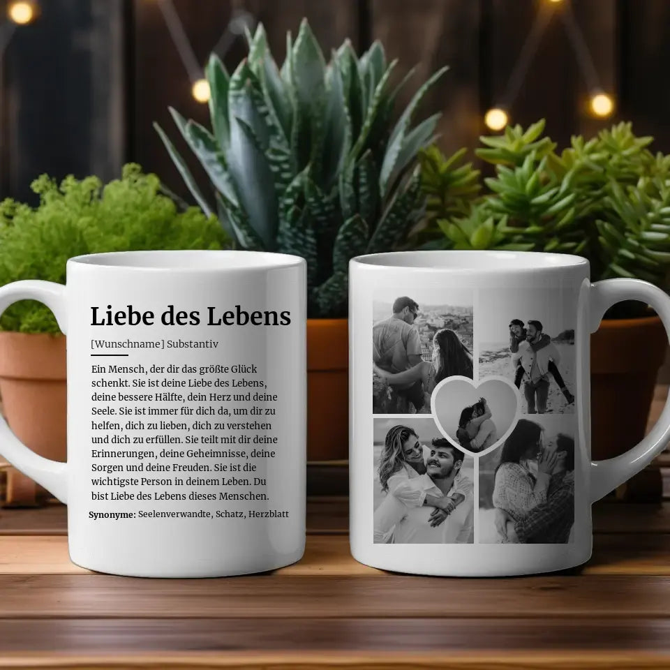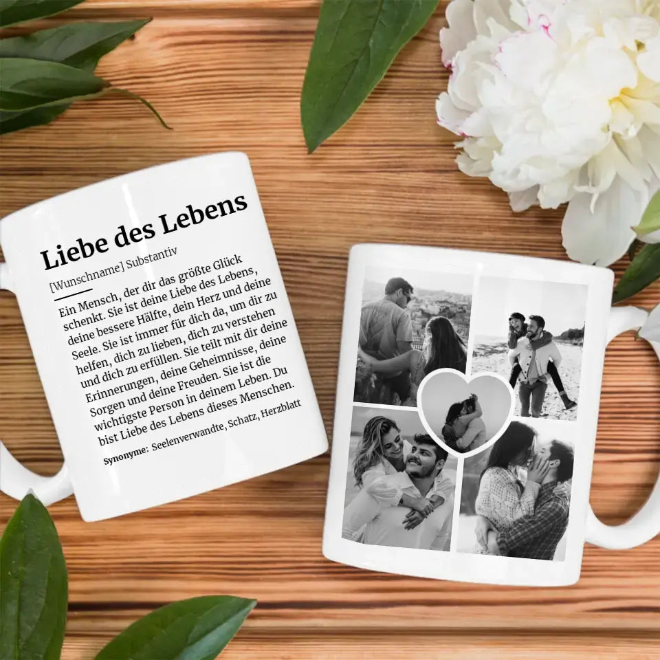 Personalisierte Tasse Definition Liebe des Lebens Mit Name und 5 Fotos