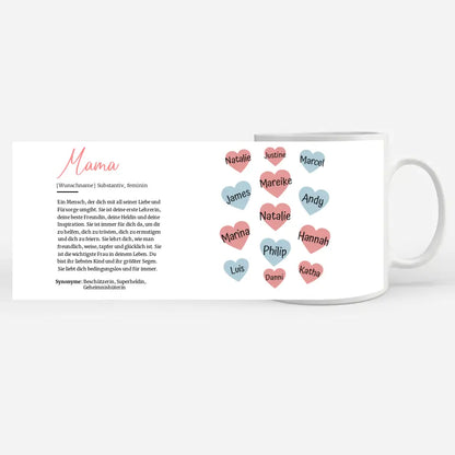 Personalisierte Tasse Definition Mama mit Namen auf Herzen