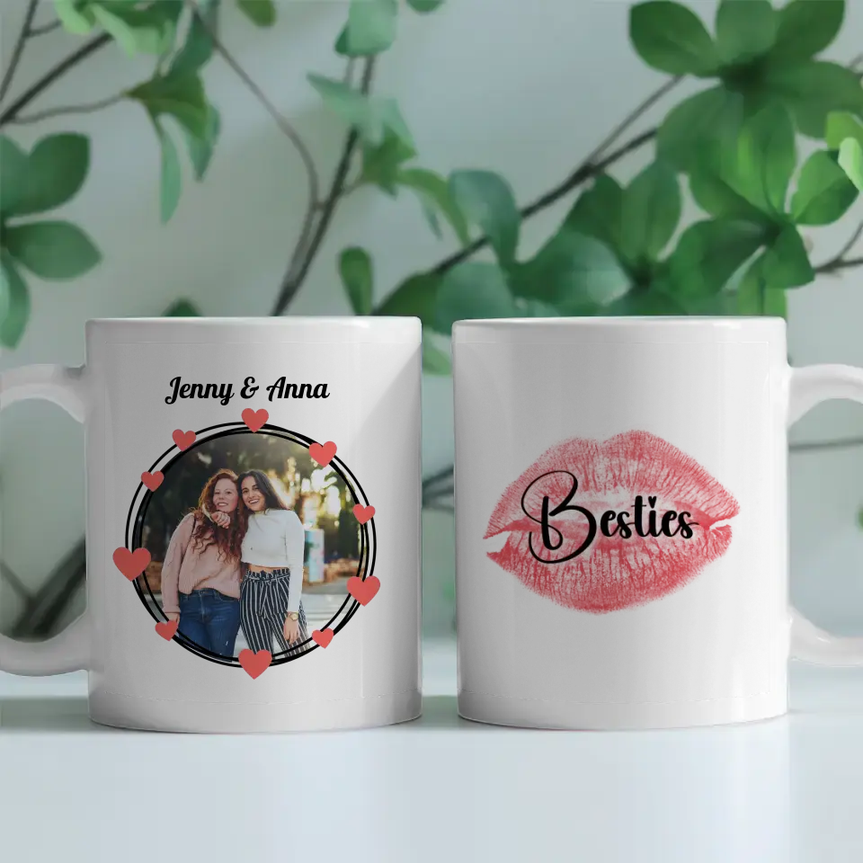 Du magst einzigartige Geschenke? Dann ist unsere Personalisierte Tasse Freundinnen Besties Kussmund Beste Freundin Fototasse das perfekte personalisierbare Geschenk.