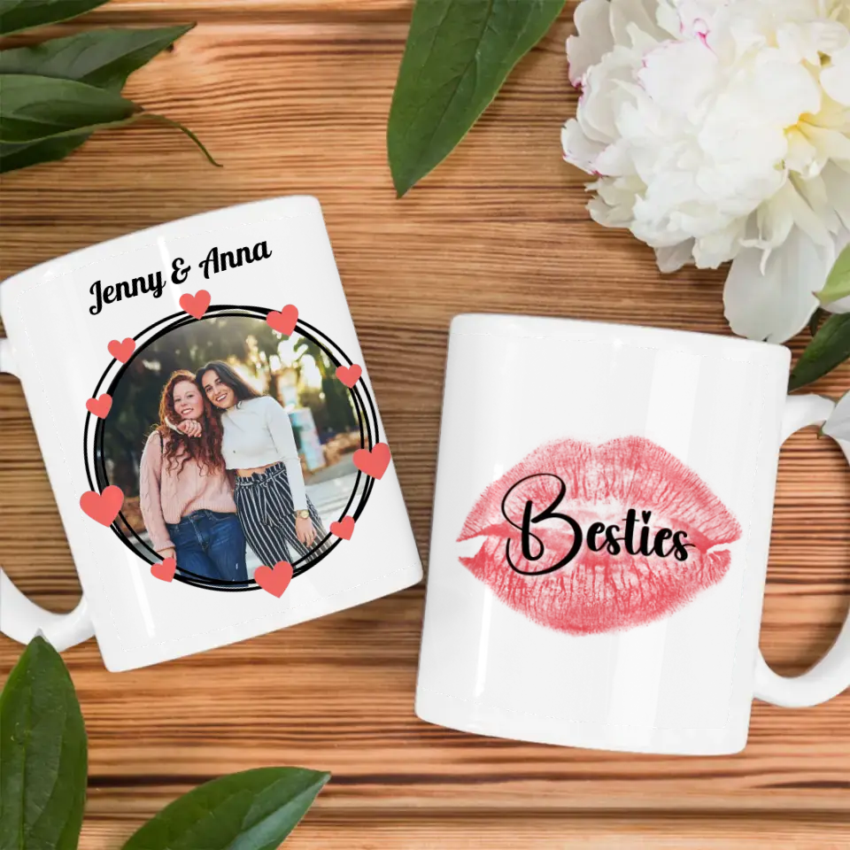 Personalisierte Tasse Freundinnen Besties Kussmund Beste Freundin Fototasse