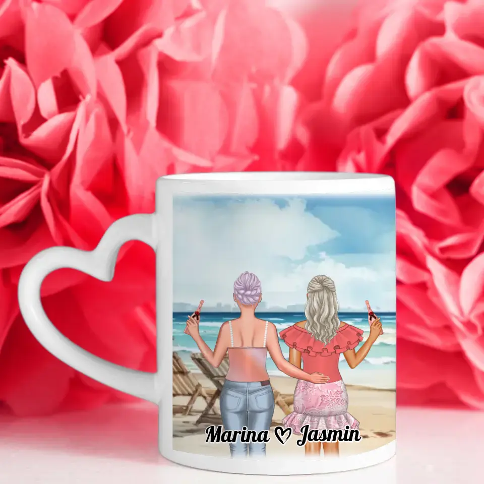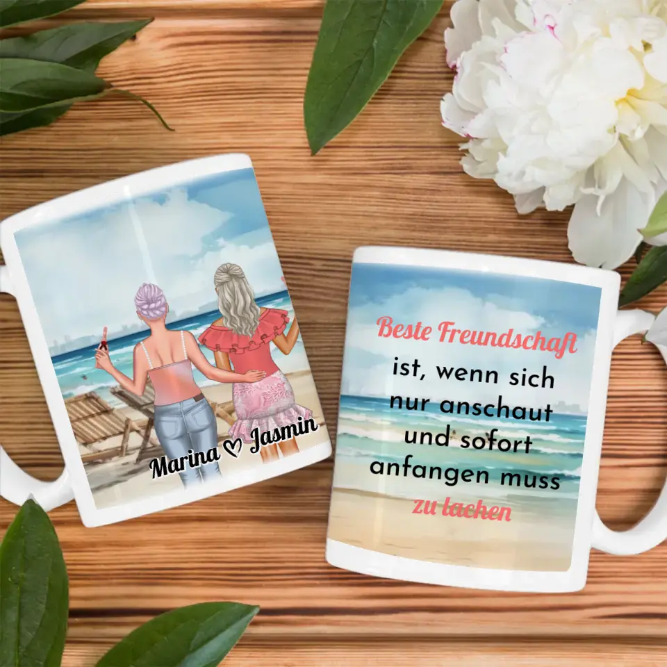 Unsere Personalisierte Tasse für 2 Freundinnen Meer mit Liegestühlen