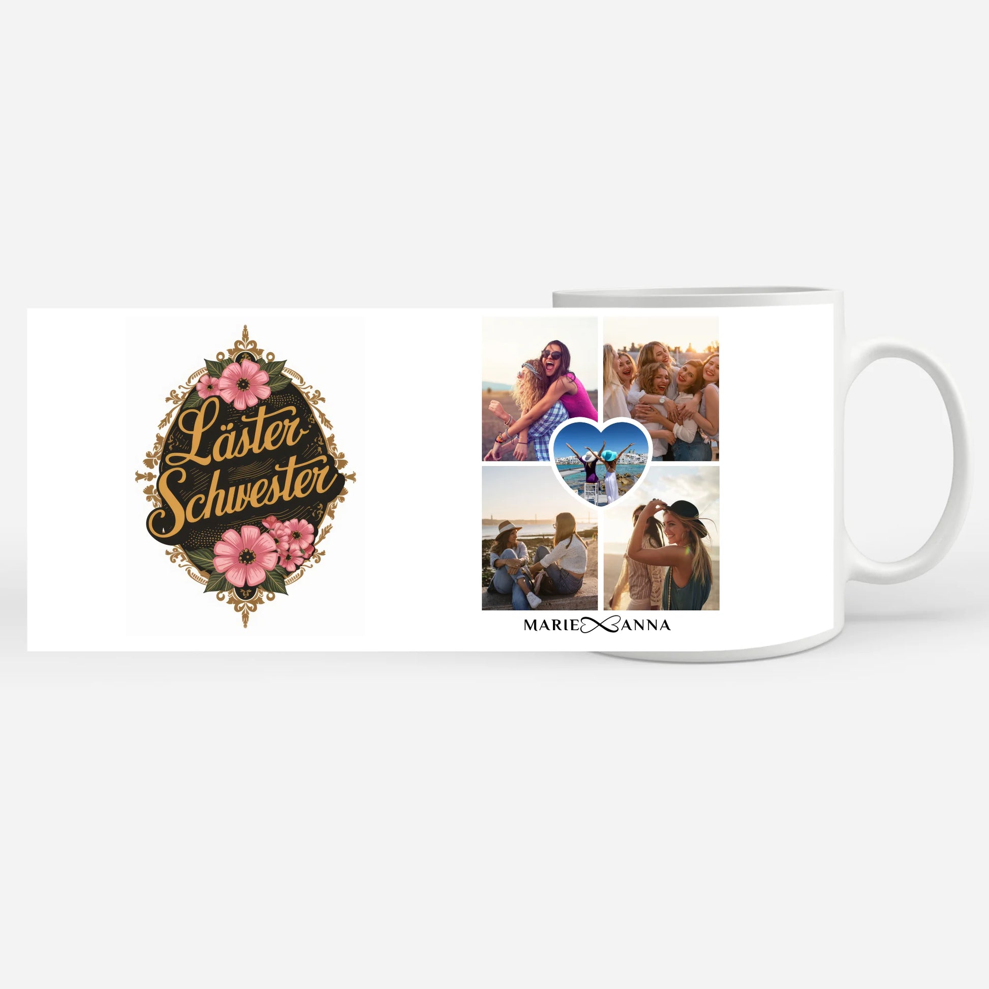 Personalisierte Tasse für Beste Freundin Lästerschwester mit 5 Fotos