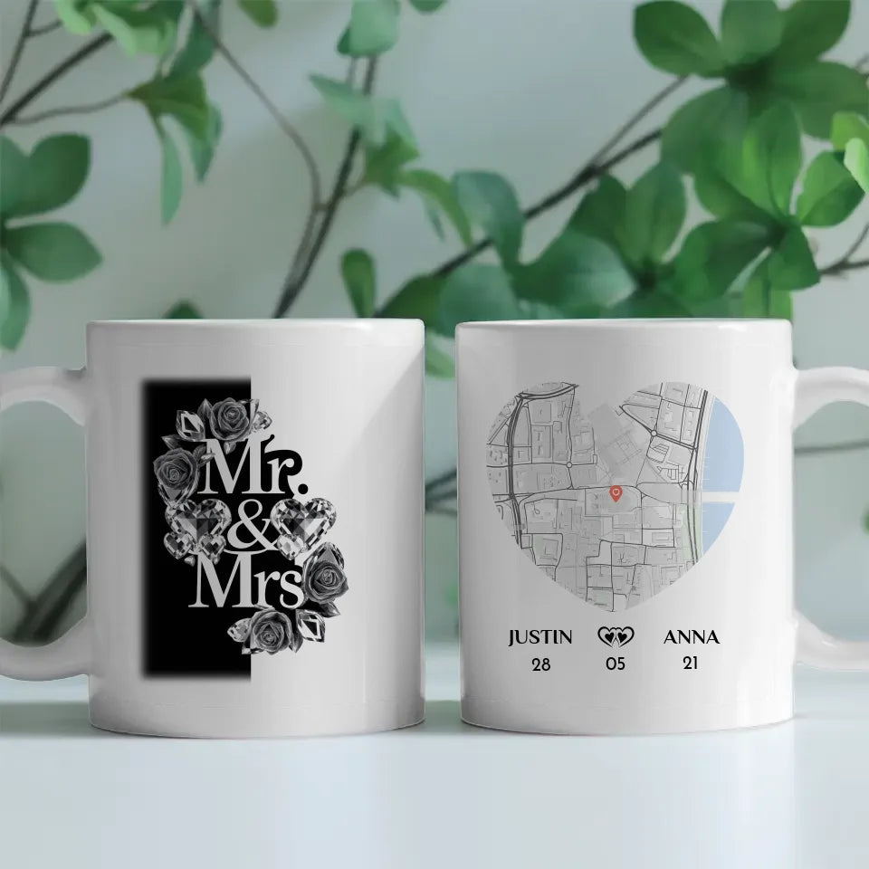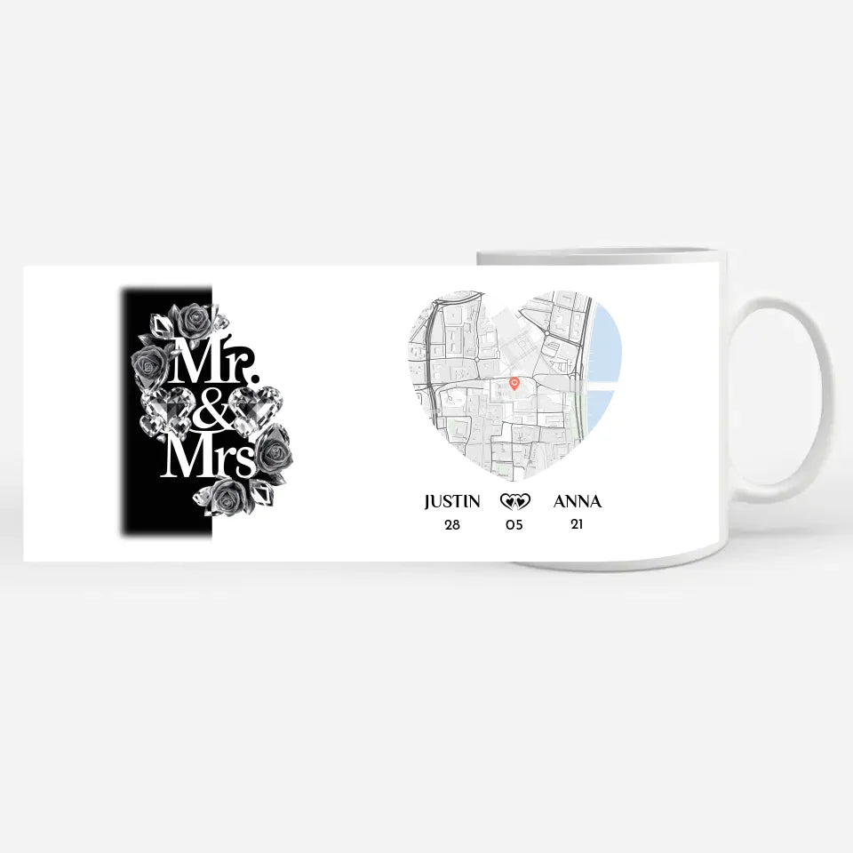 Unsere Personalisierte Tasse für Paare Mr and Mrs Stadtkarte