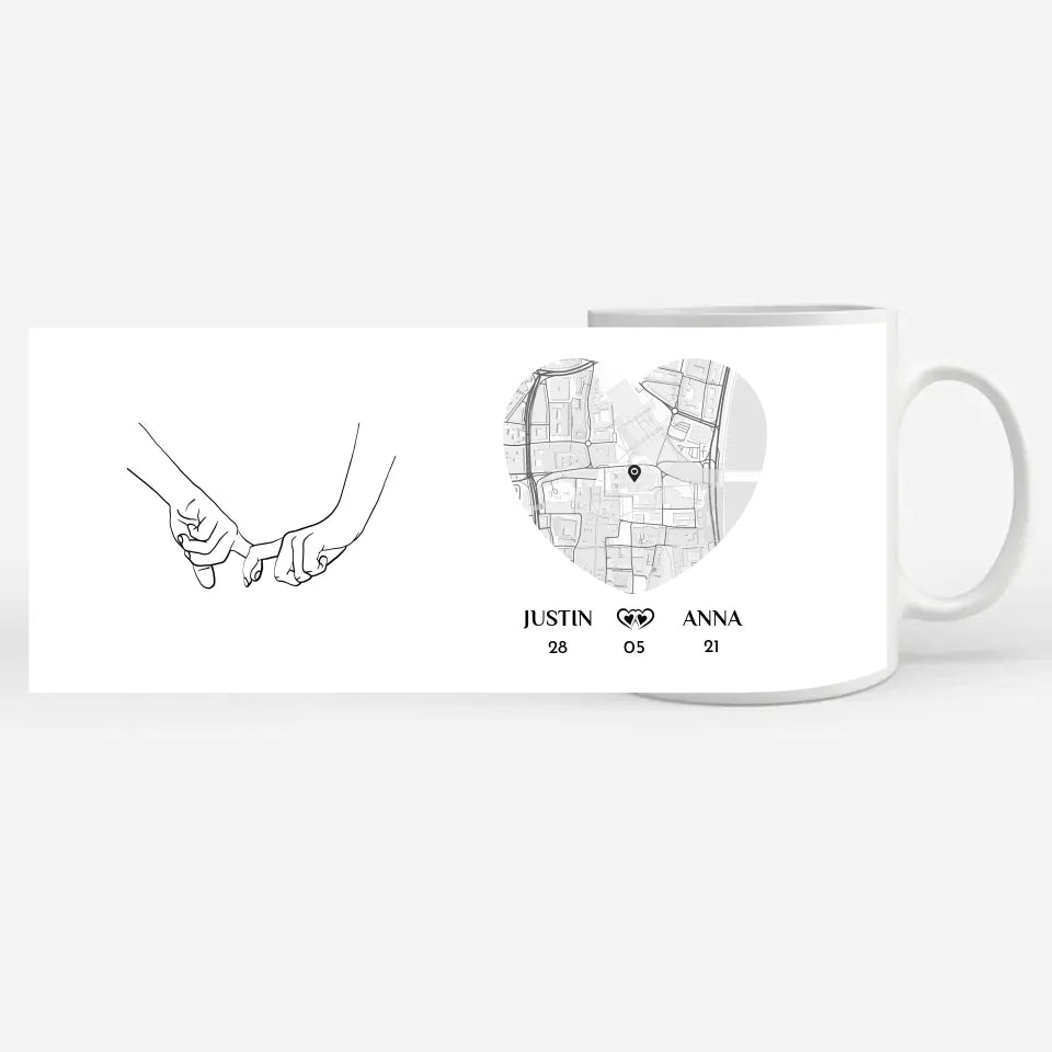 Personalisierte Tasse Hände Line Art Stadtkarte für Paare