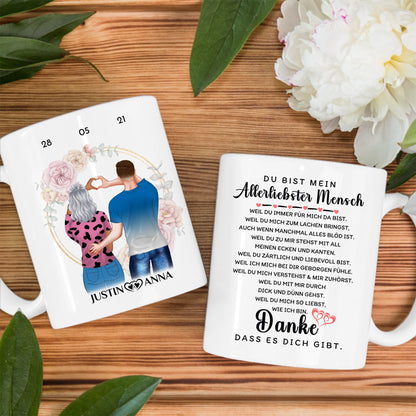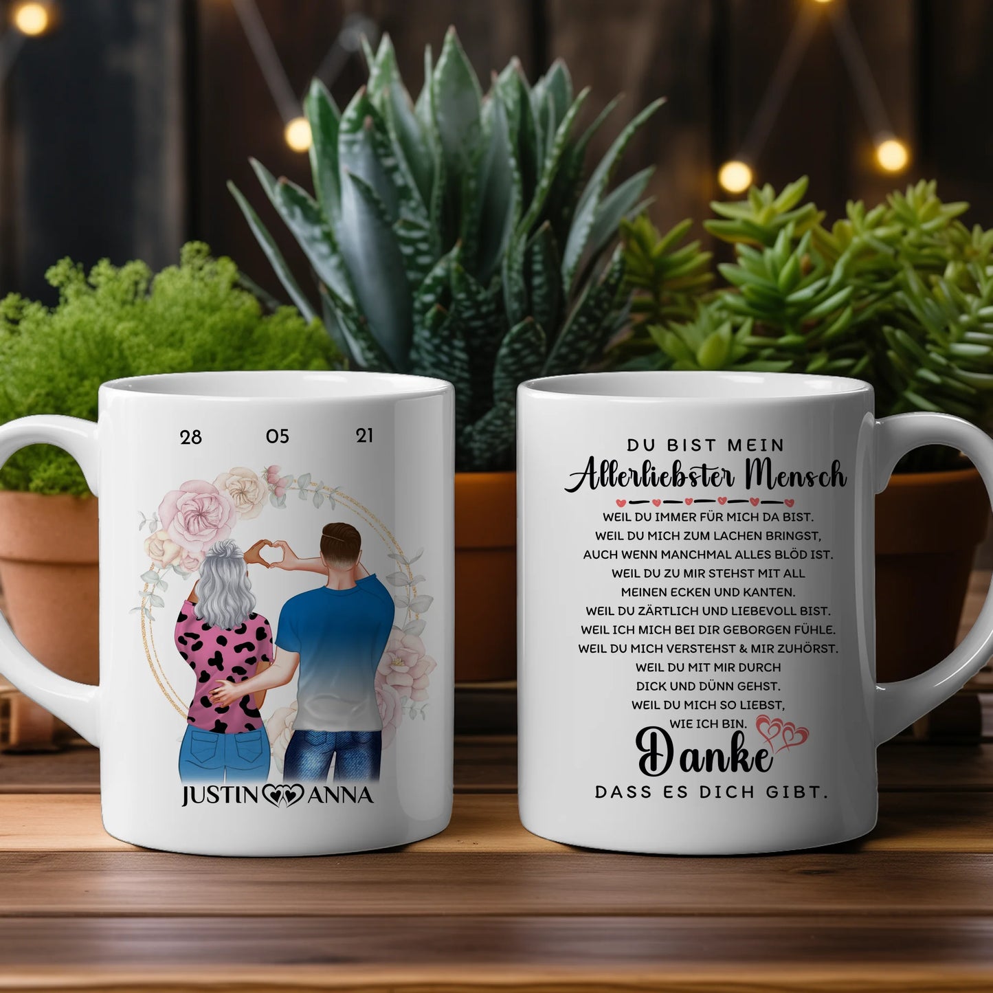 Du möchtest etwas einzigartiges verschenken? Dann ist Unsere Personalisierte Tasse Liebe Danke dass es dich gibt Paar als Cliparts ein perfektes und super schönes personalisiertes Geschenk.