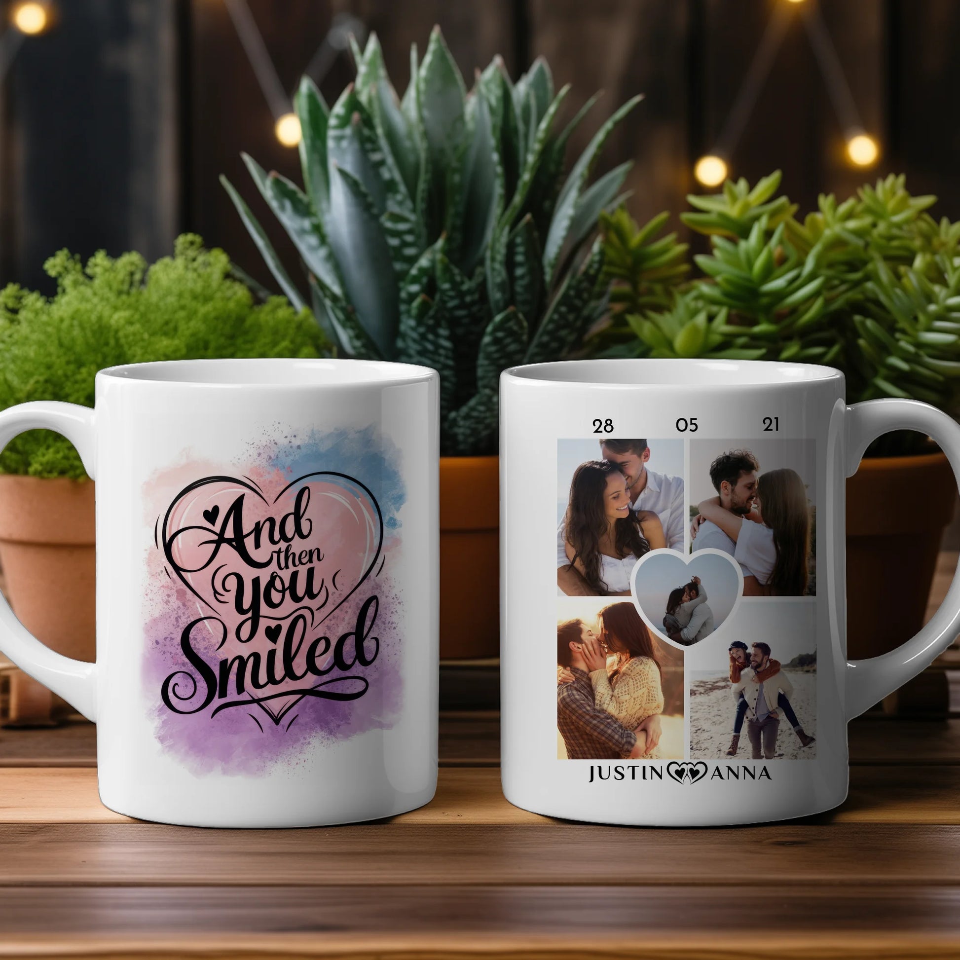 Unsere Personalisierte Tasse mit 5 Fotos And Then You Smiled Watercolor für Pärchen