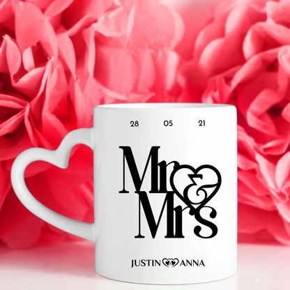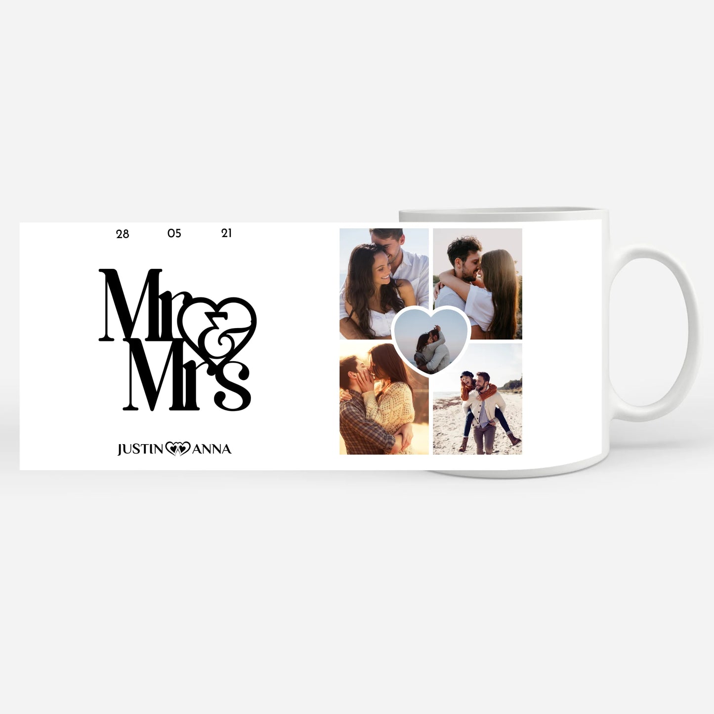 Personalisierte Tasse mit 5 Fotos Mr & Mrs mit Ringen