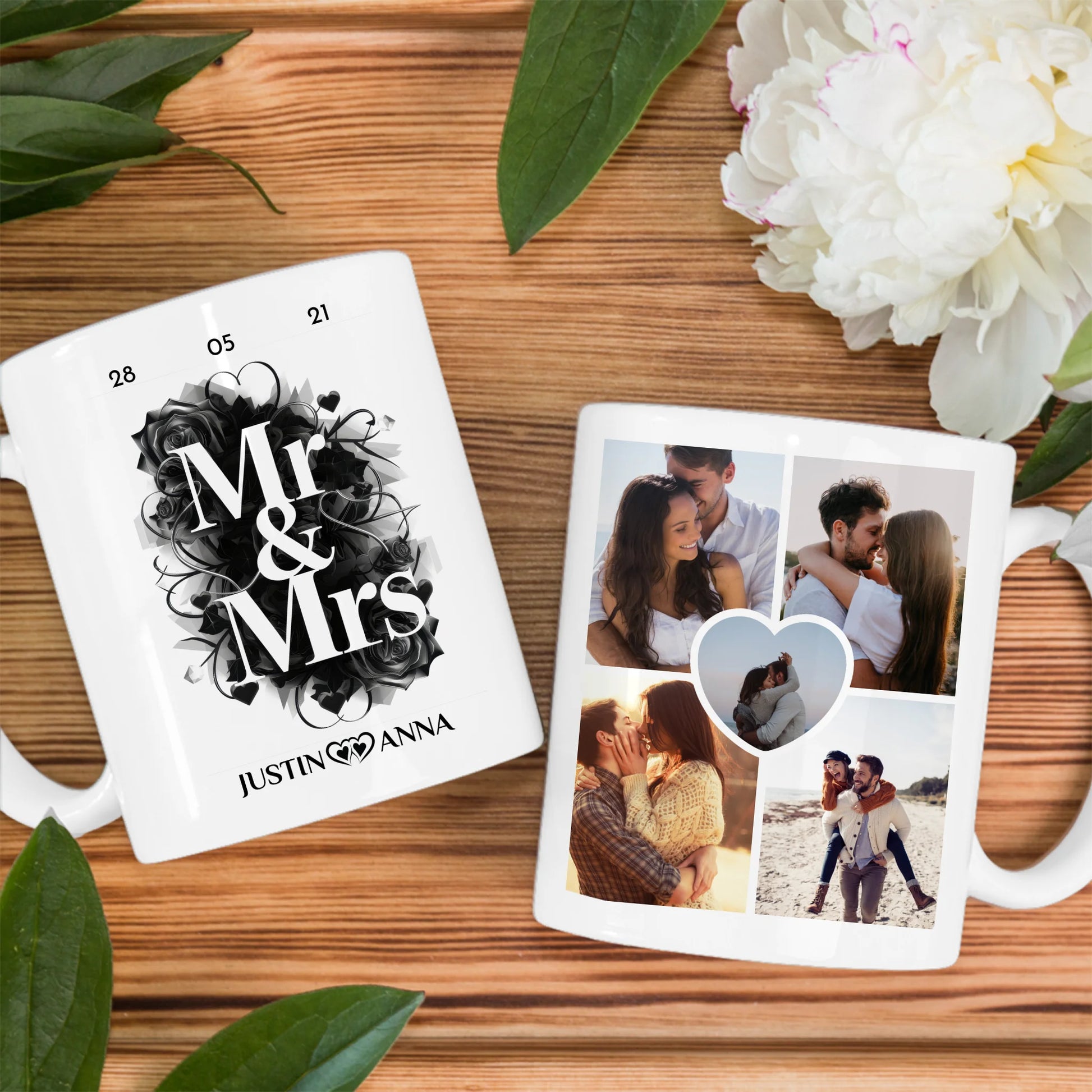 Personalisierte Tasse Mr and Mrs mit 5 Fotos