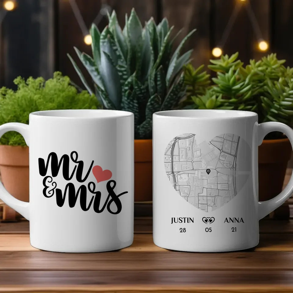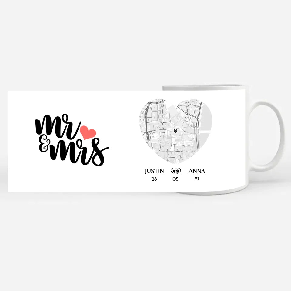 Unsere Personalisierte Tasse Mr & Mrs Stadtkarte für Paare