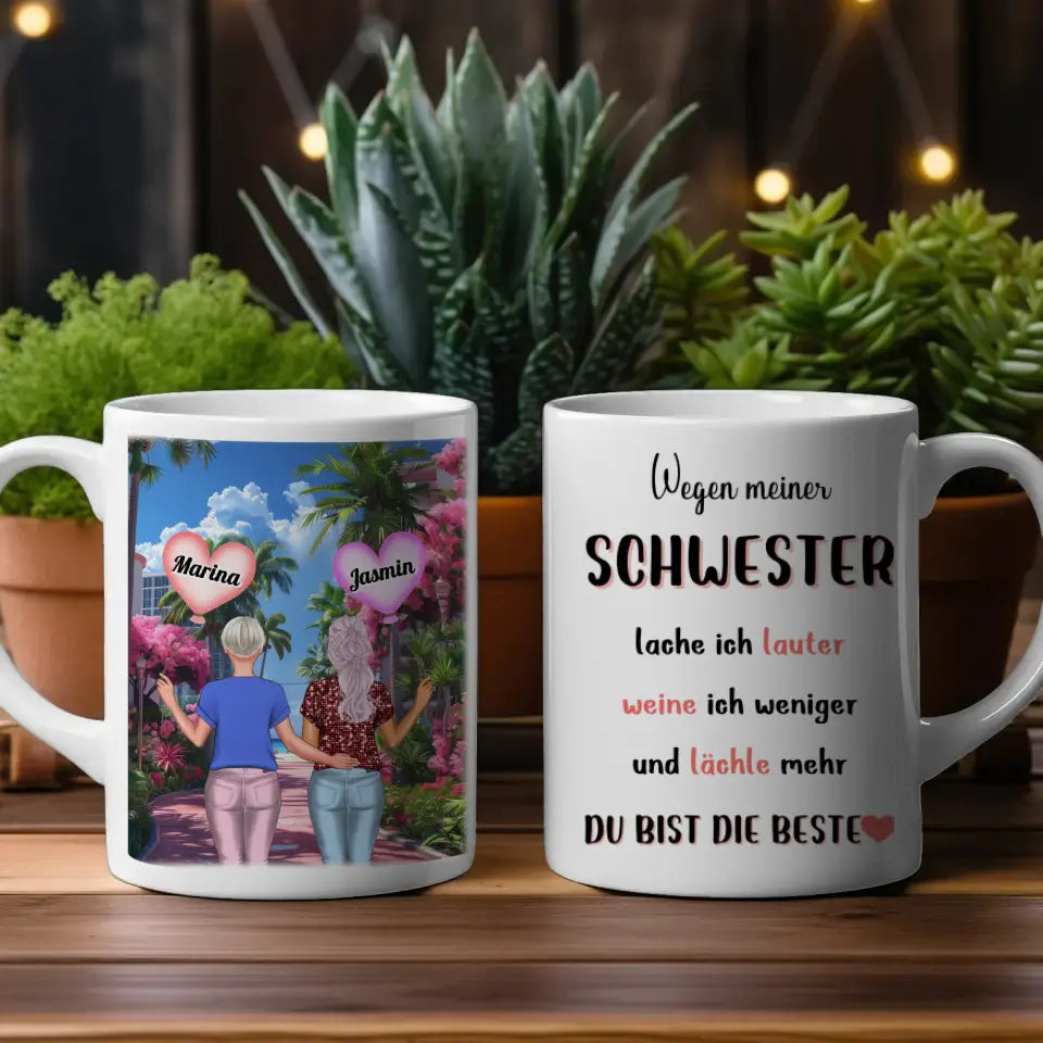 Diese personalisierte Tasse Basic ist perfekt für Schwestern .Also perfekt zum Geburtstag, zu Weihnachten oder einfach als nette Aufmerksamkeit .