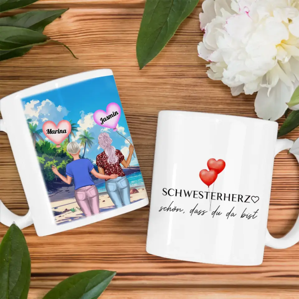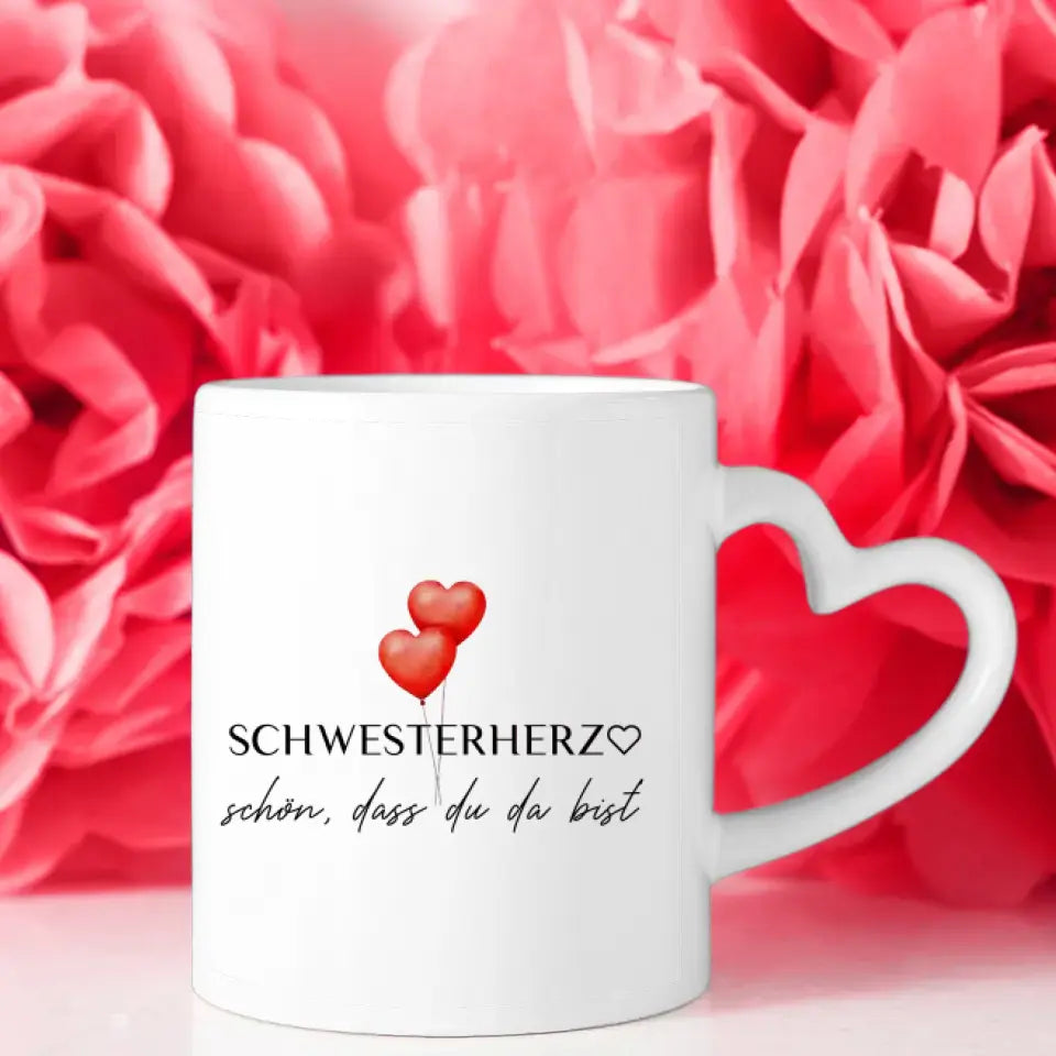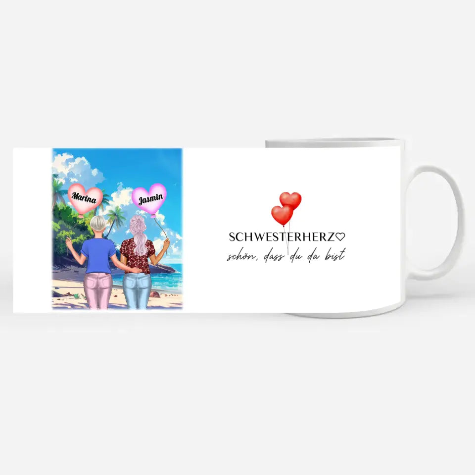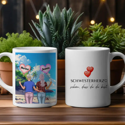 Personalisierte Tasse Schwester Schwesterherz Schön dass du da bist Standhaus