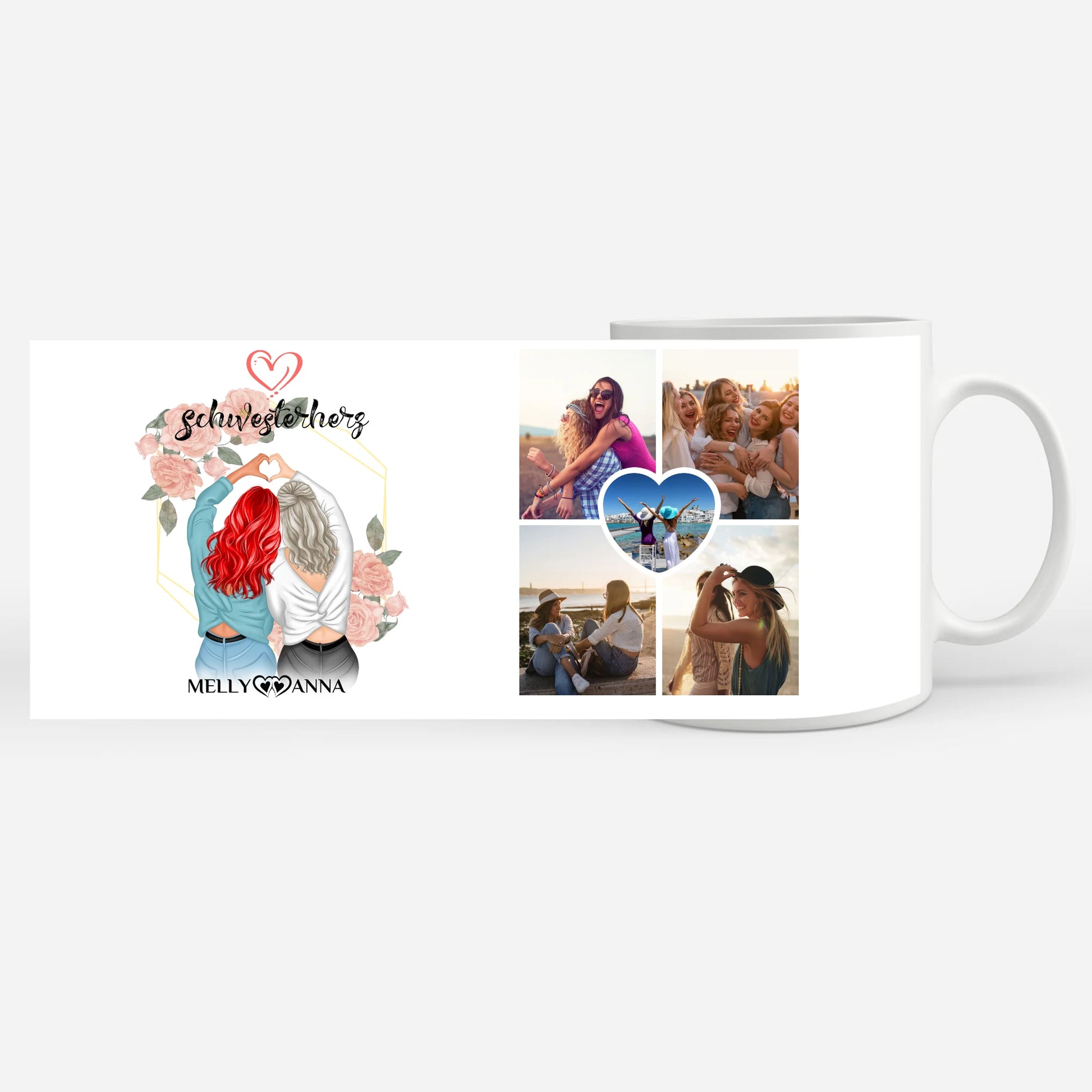 Du möchtest mal wieder etwas einzigartiges verschenken? Unsere Personalisierte Tasse Schwesterherz für Schwester mit 5 Fotos ein schönes personalisiertes Geschenk.