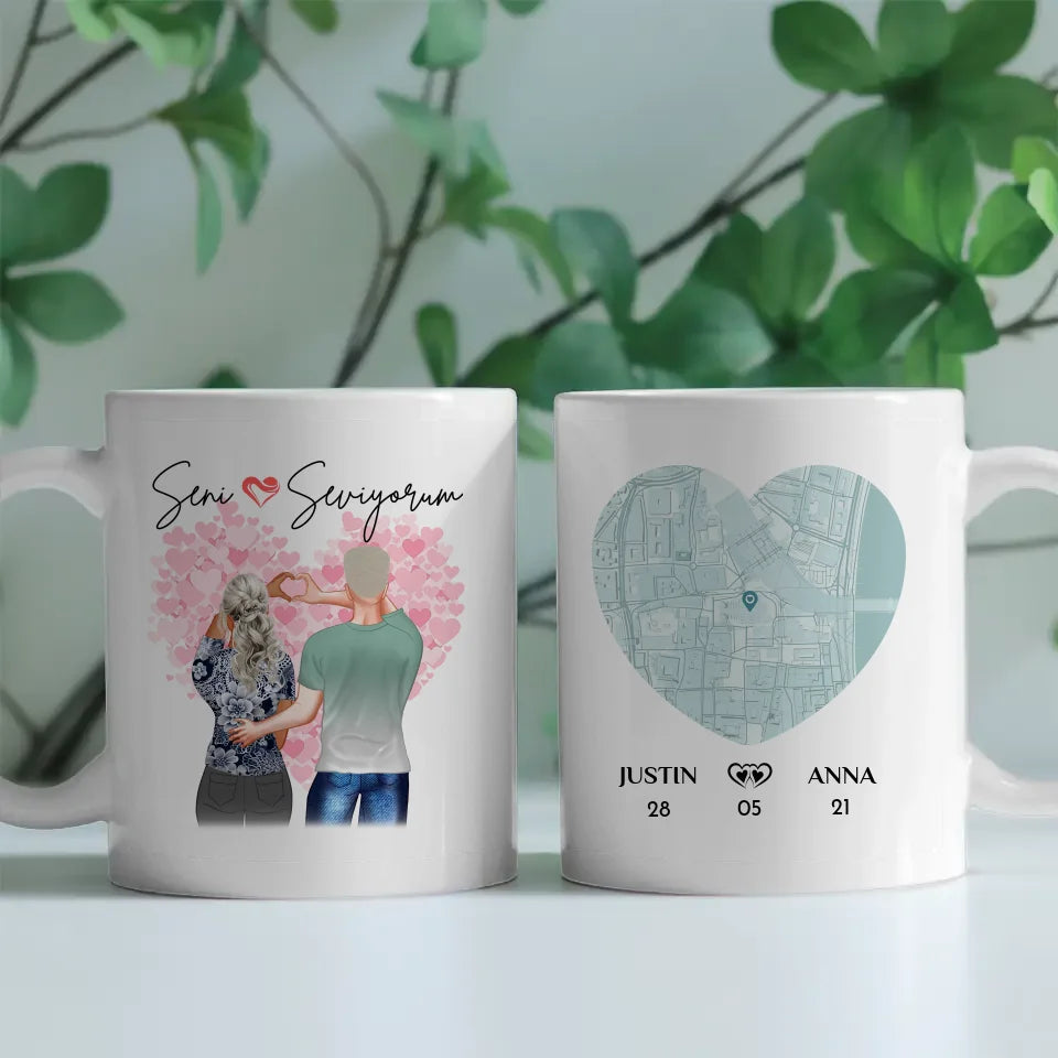 Unsere Personalisierte Tasse Stadtkarte Seni Seviyorum für Paare