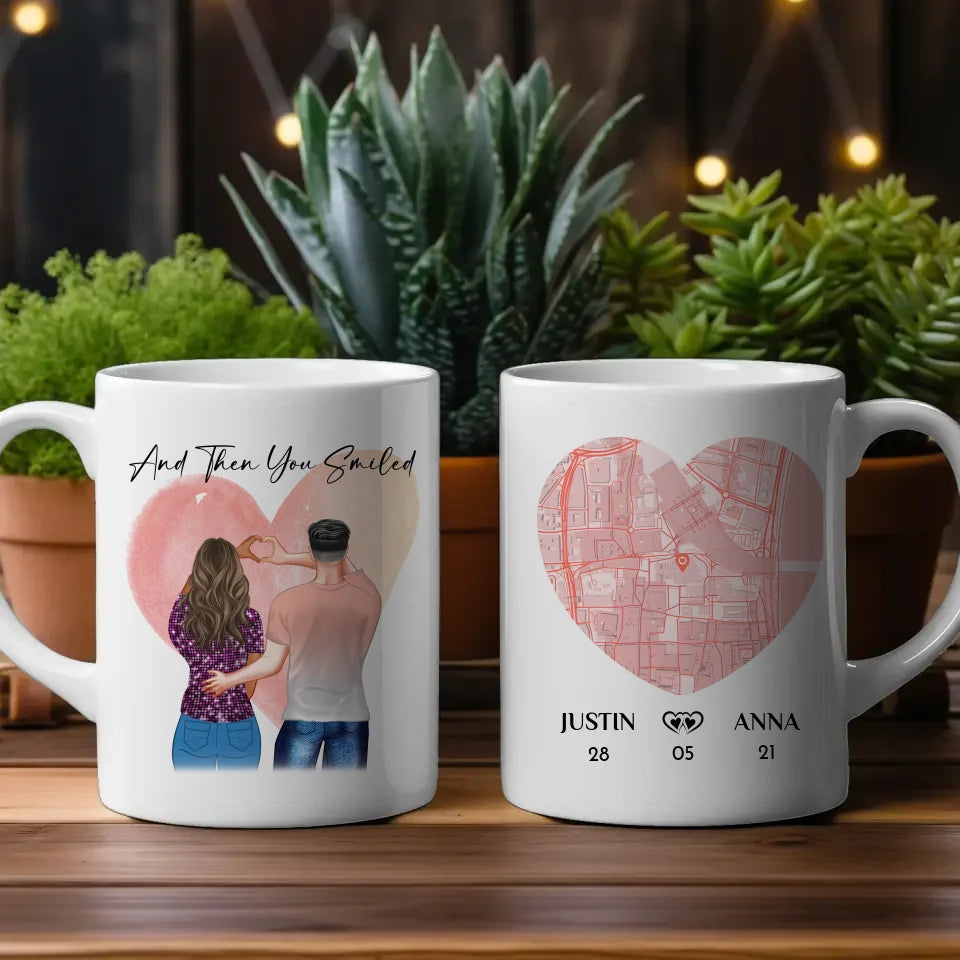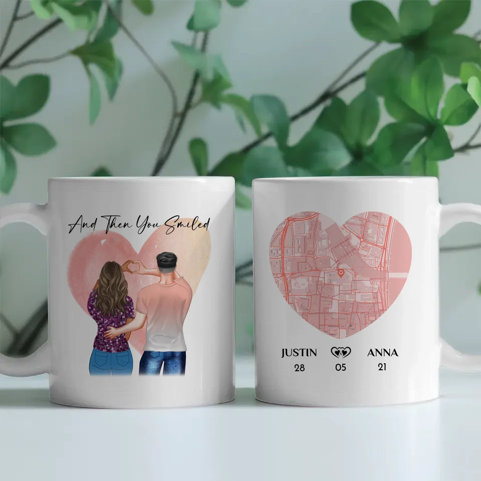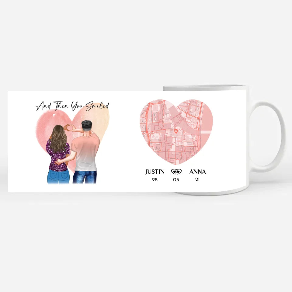 Du würdest gerne etwas einzigartiges schenken? Dann ist Unsere Personalisierte Tasse Stadtkarte You Smiled Paar als Cliparts ein wirklich einzigartiges personalisiertes Geschenk.