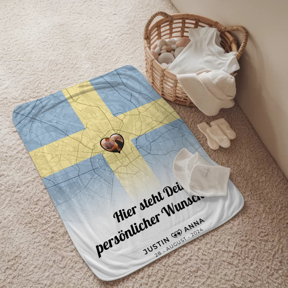 Personalisierten Decke Paar Stadtkarte Foto Schweden Wunschtext
