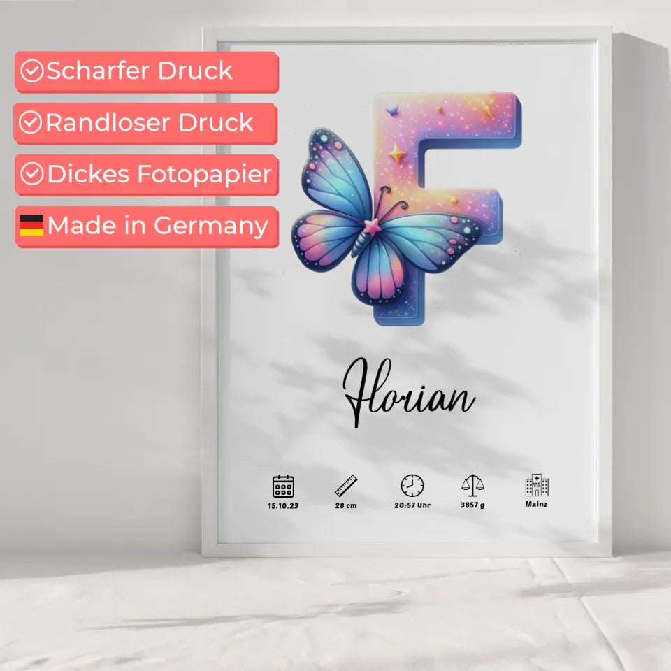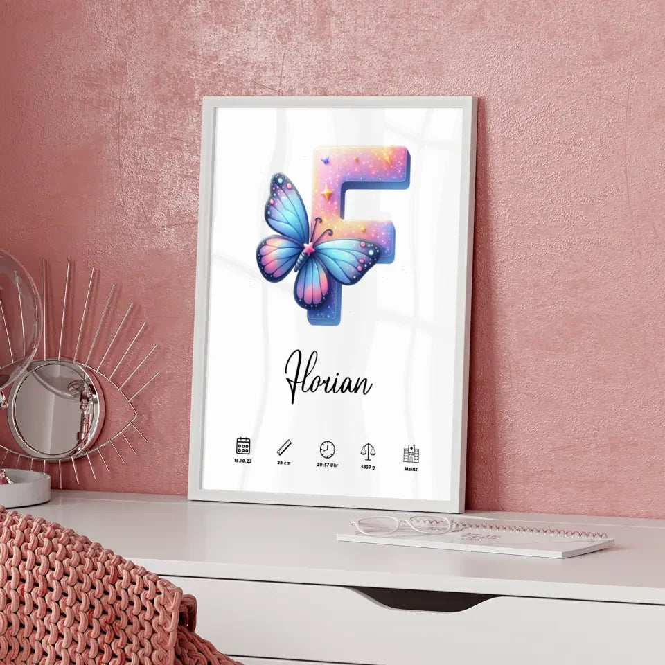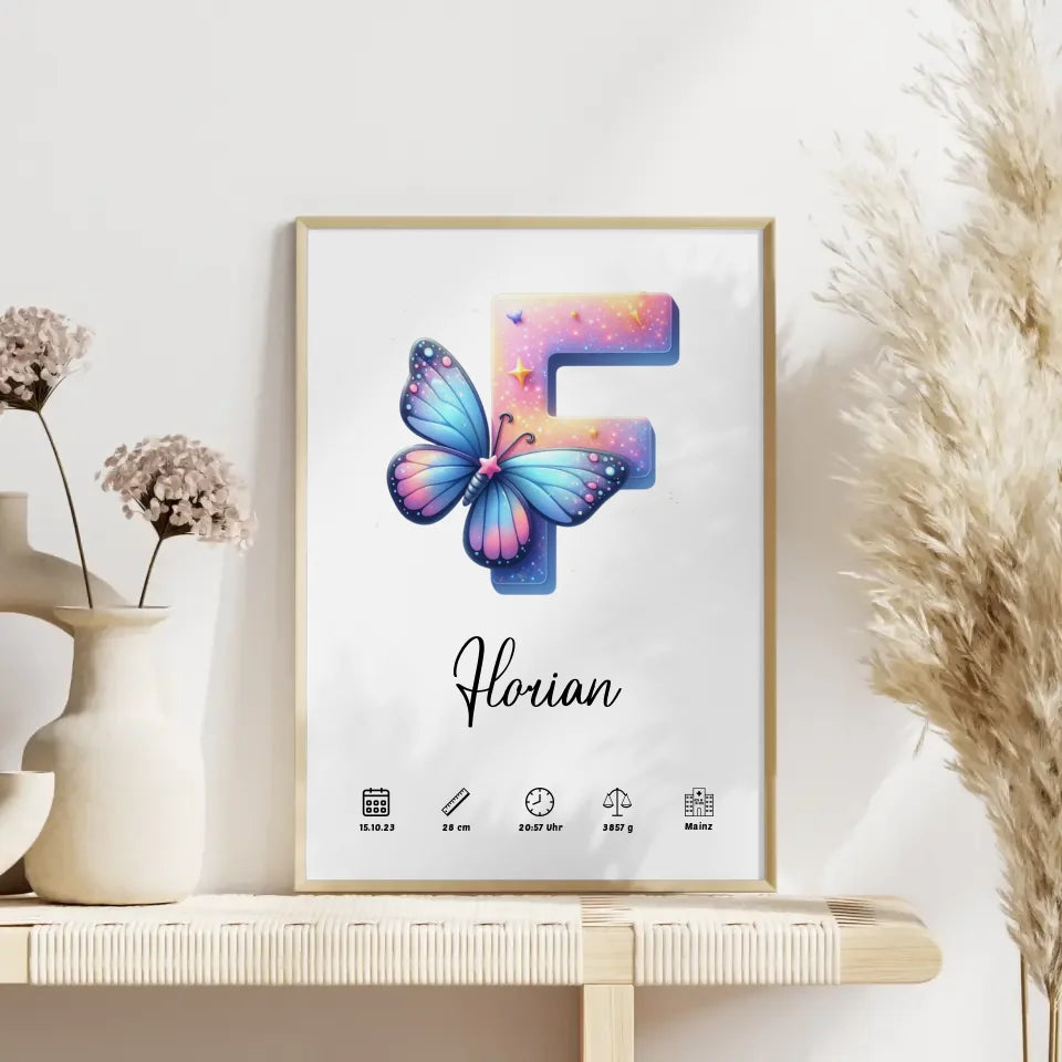 Personalisierter Buchstaben Poster Buchstabe F Geburt A-Z Geschenkidee