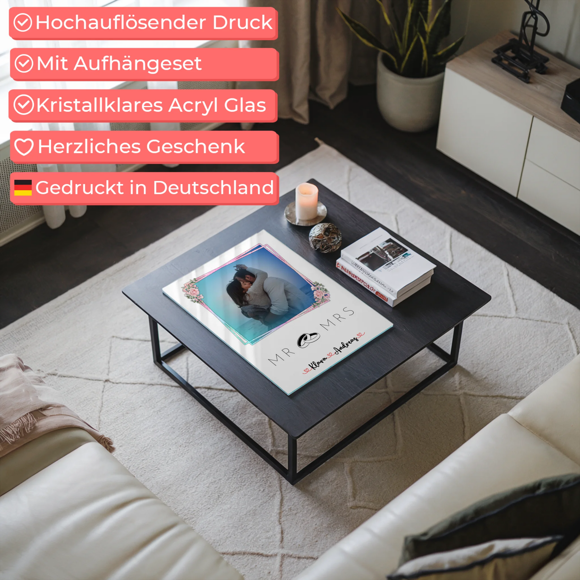 Personalisiertes Acryl Glas Bild für Paare Mr & Mrs mit 9 Fotos Namen und Wunschtext