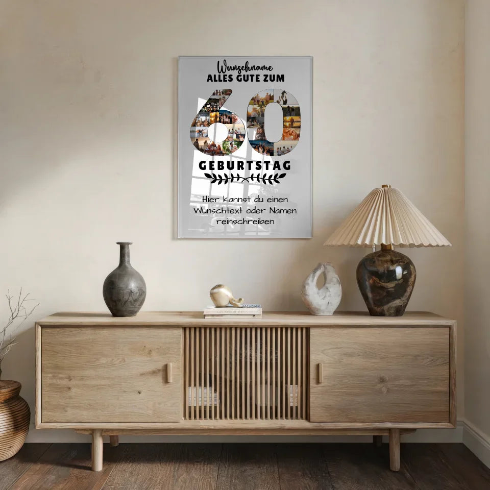 Personalisiertes Acrylglas Bild 60 Geburtstag mit Wunschname Wunschtext