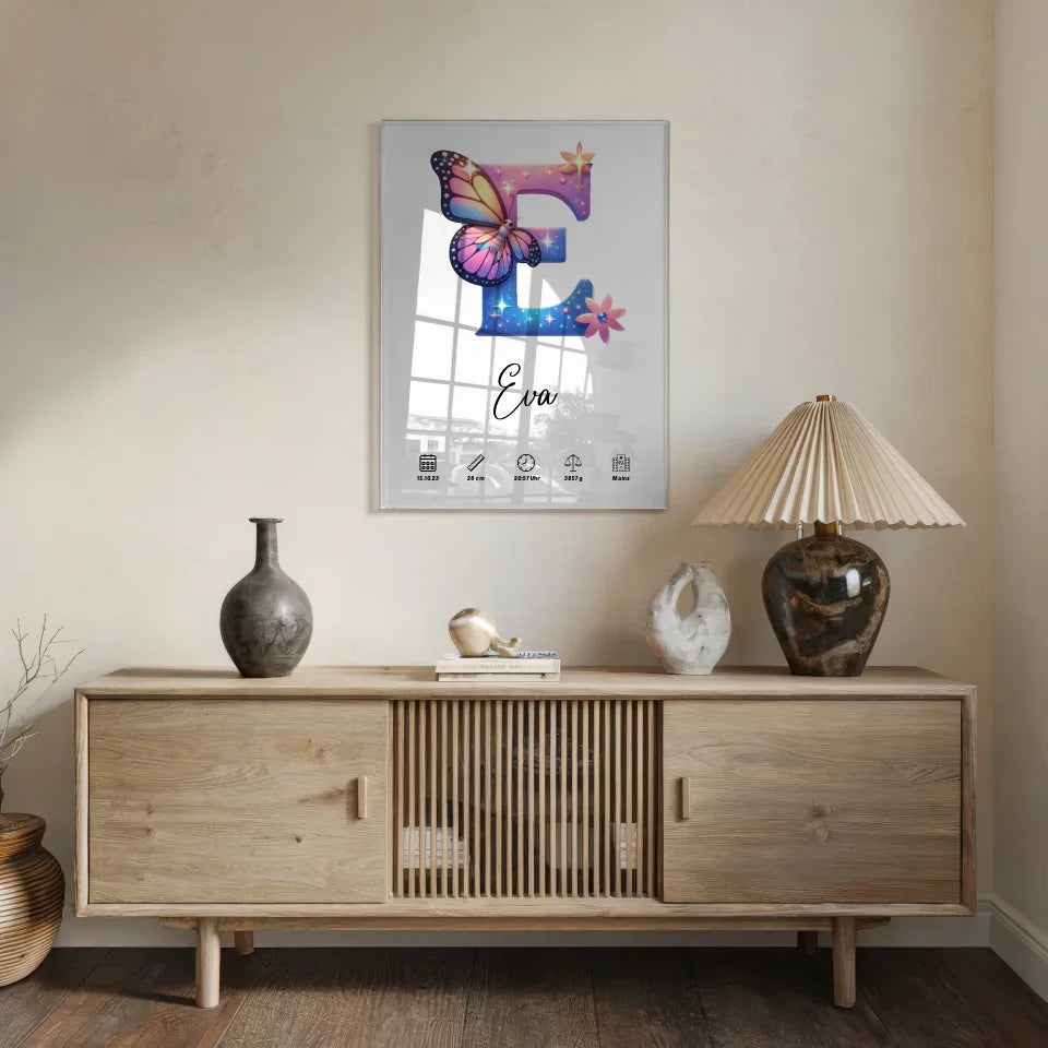 Personalisiertes Acrylglas Bild Buchstabe E für Geburt A-Z