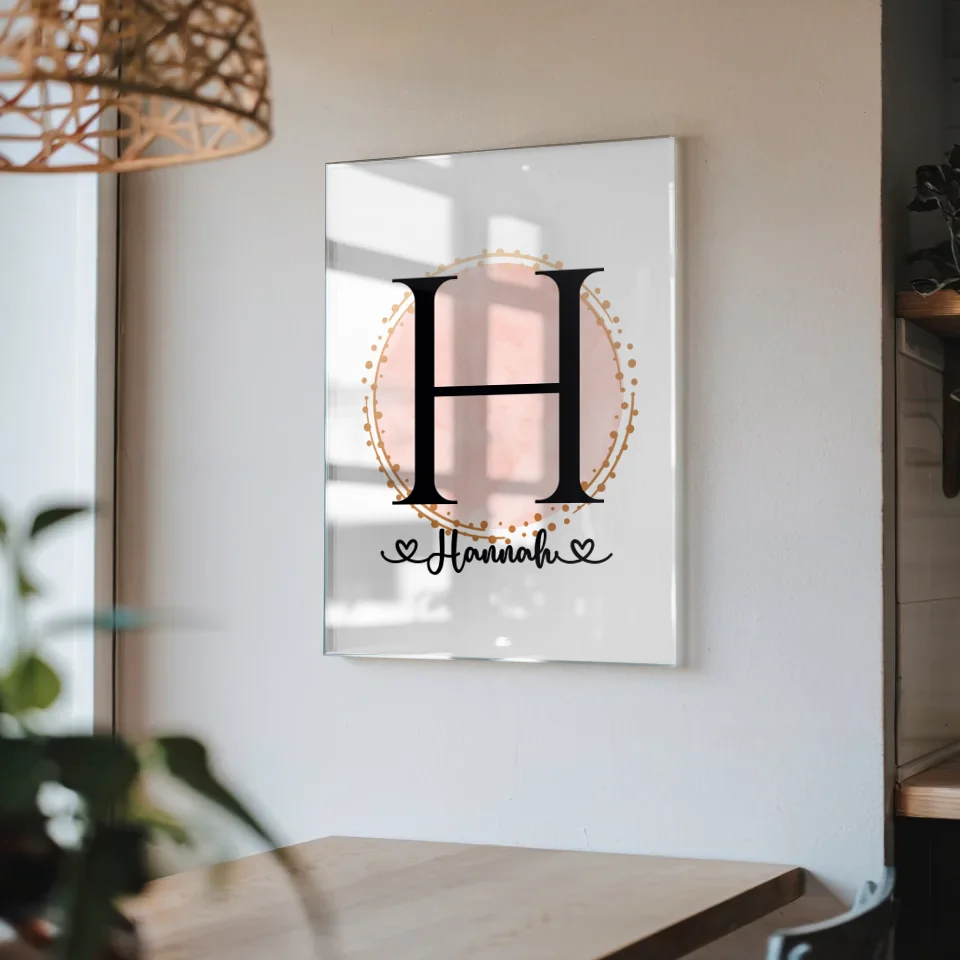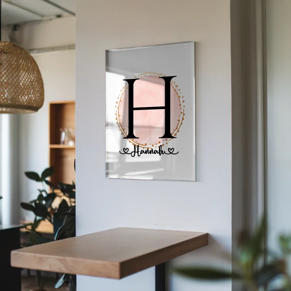 Entdecke das personalisierte Acrylglas Bild mit Buchstaben H in Wasserfarbe Kreis Rosa