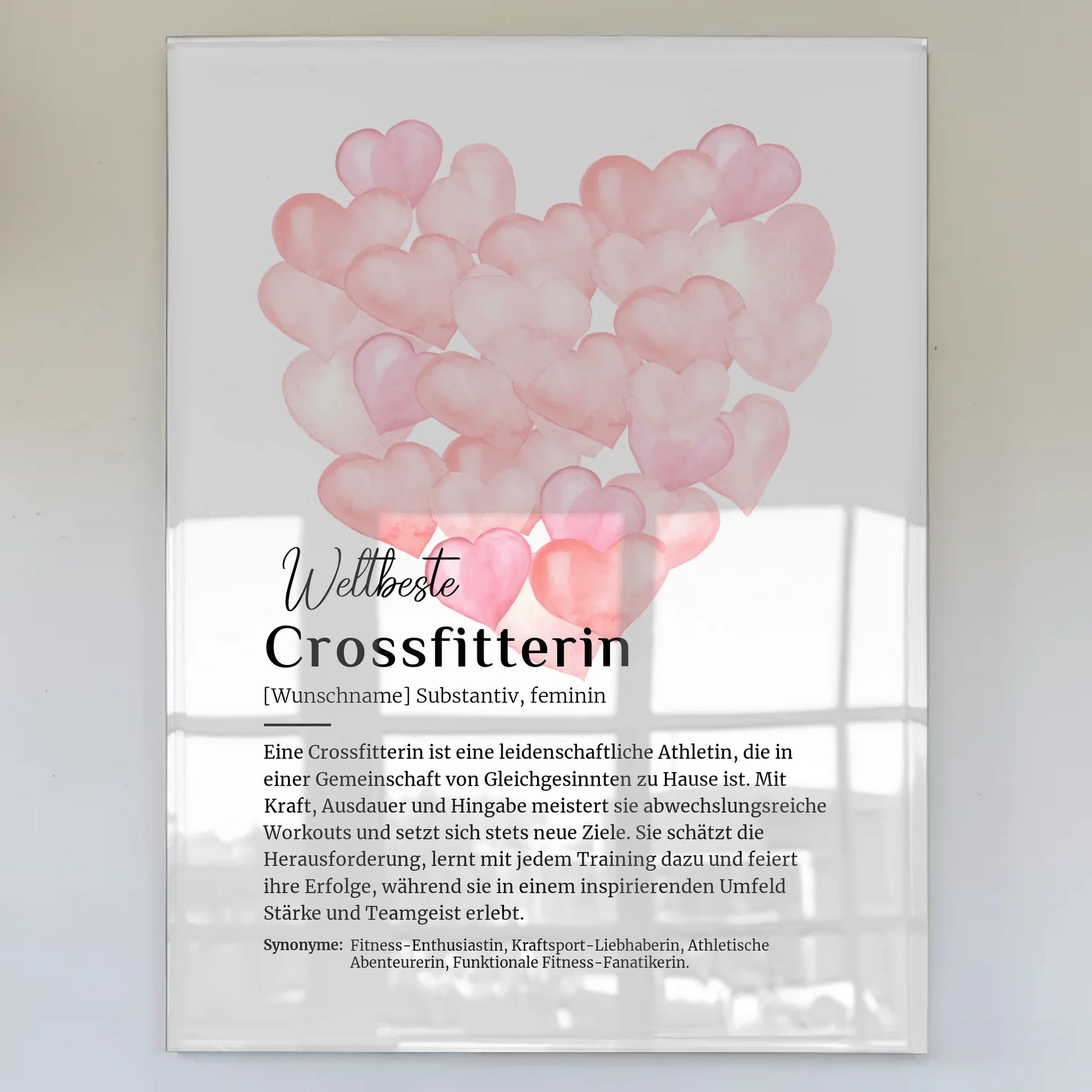 Kaufe jetzt dein personalisiertes Acrylglas Bild Crossfitterin mit Namen und mache jemandem eine Freude!
