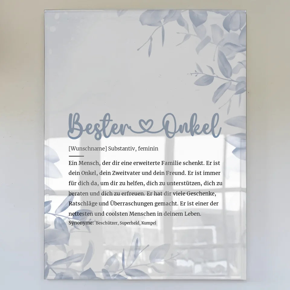 Entdecke das personalisierte Acrylglas Bild Definition Bester Onkel Herz mit Name