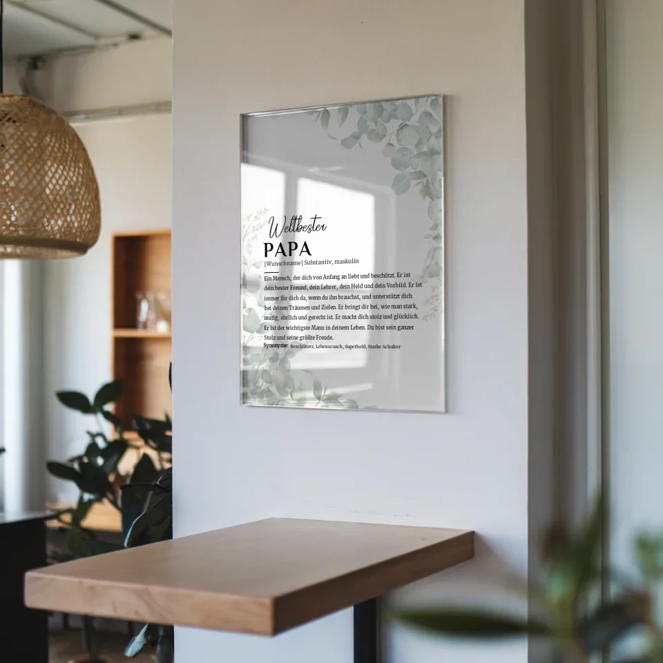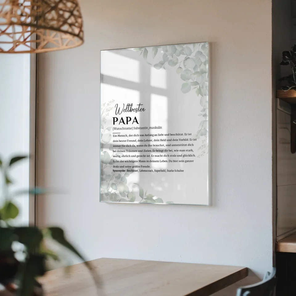 Personalisiertes Acrylglas Bild Definition Papa mit Eukalyptus und Name