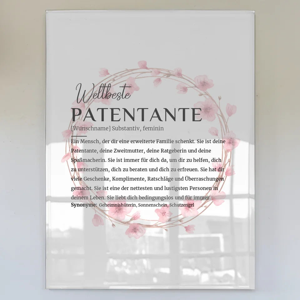 Personalisiertes Acrylglas Bild Definition Patentante mit Name Blütenkranz