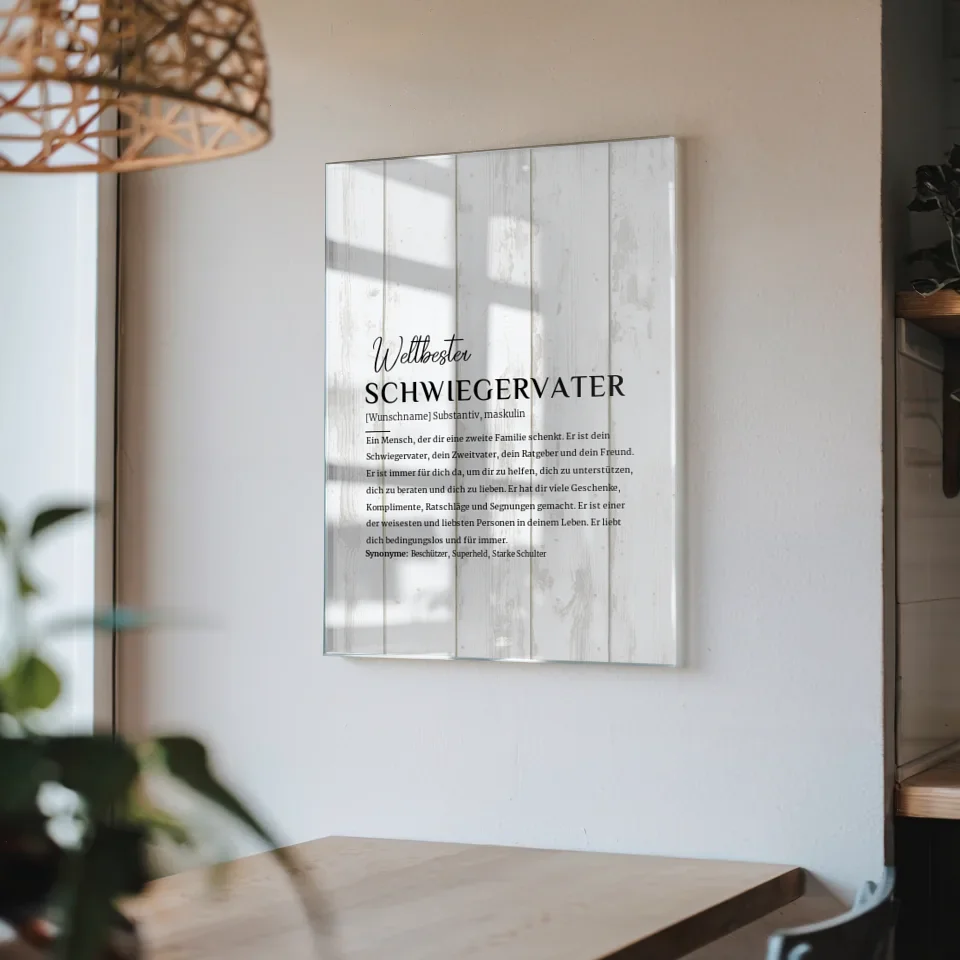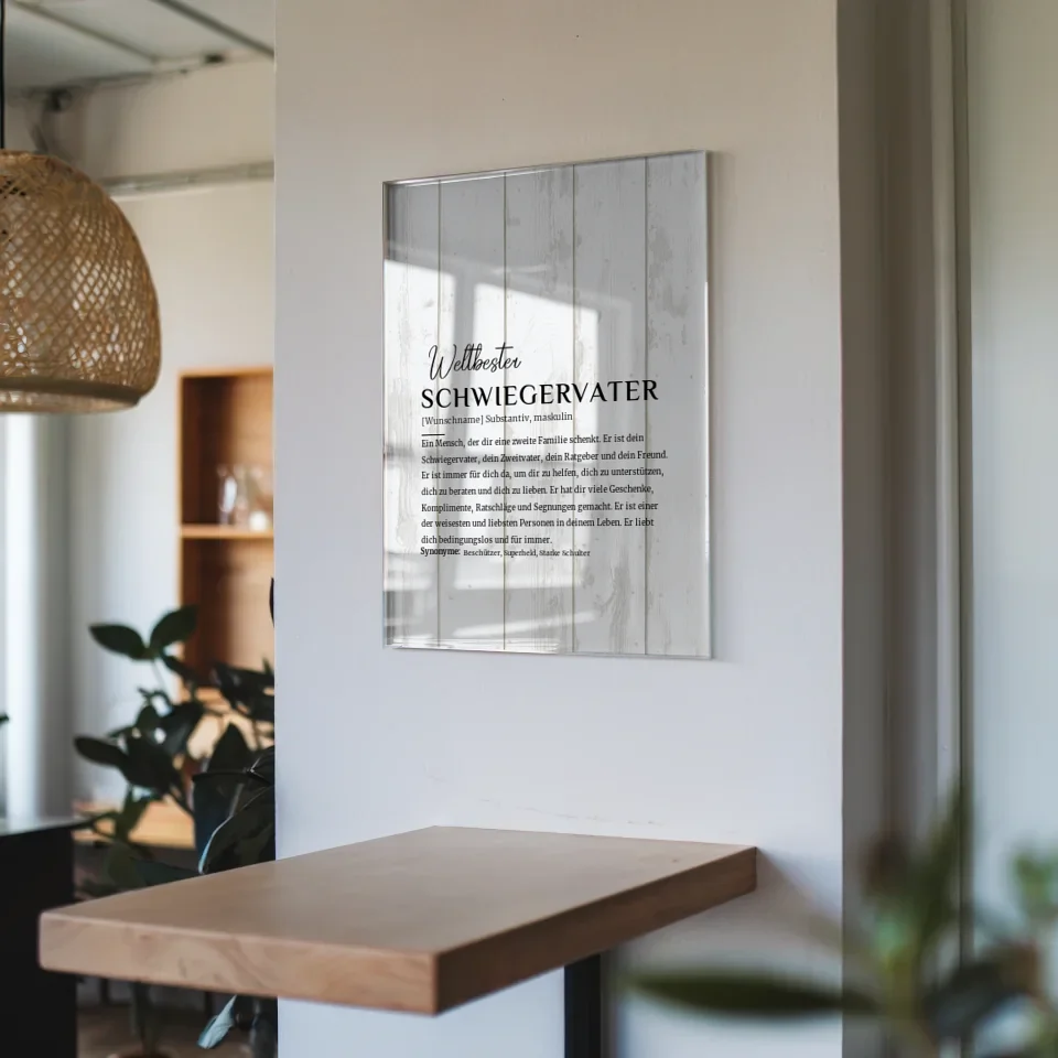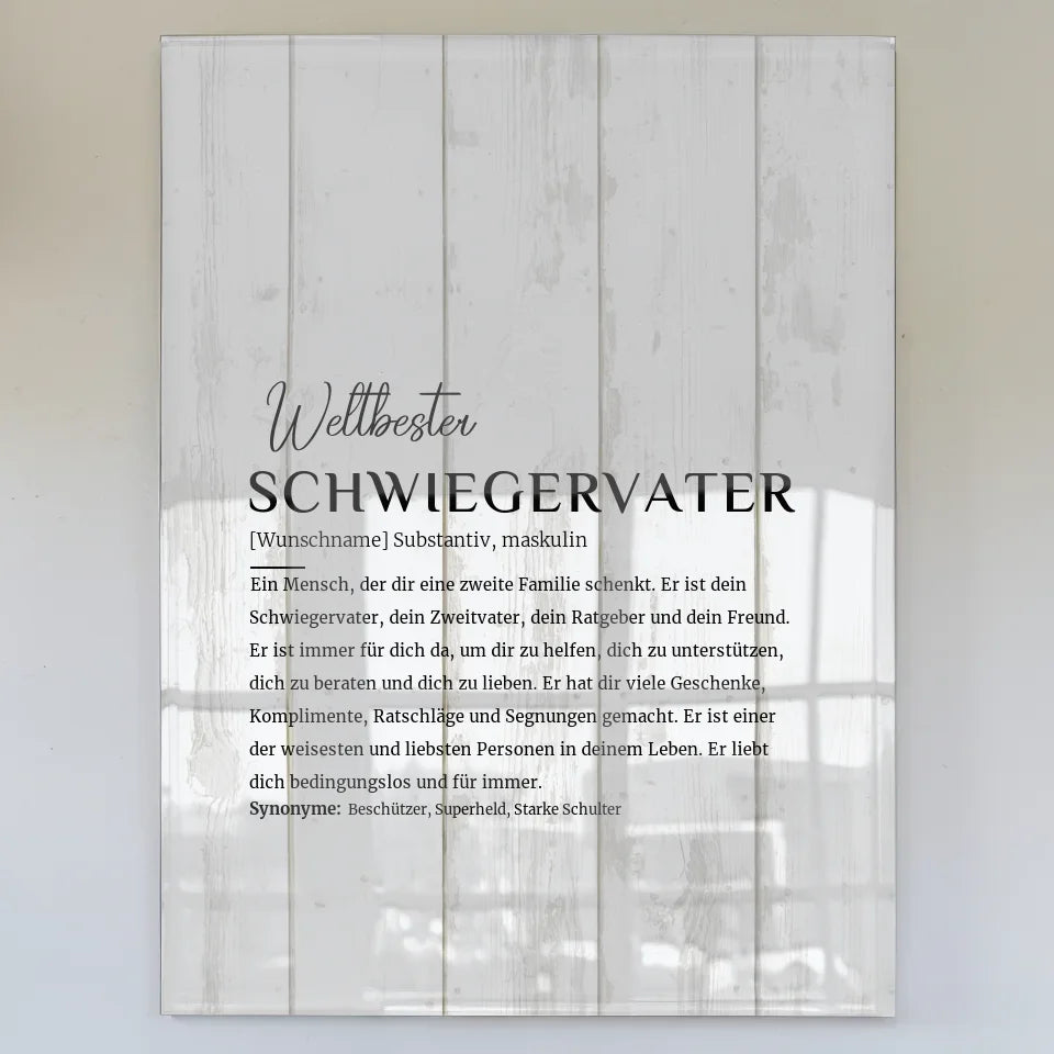 Personalisiertes Acrylglas Bild Definition Schwiegervater Holzstil Weiß