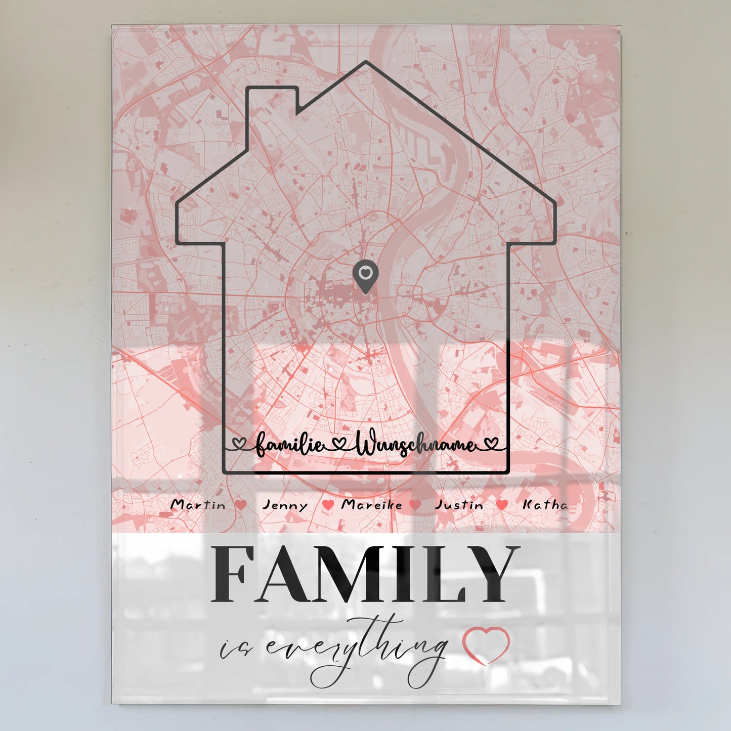 Personalisiertes Acrylglas Bild Familie Stadtkarte Family Is Everything mit Nachname